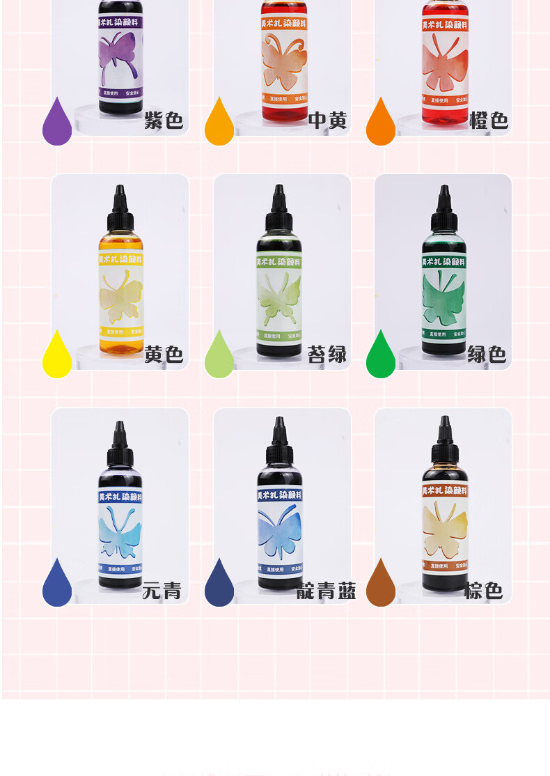 供应商:京东 品牌:苏拉达(Surada) 产地:中国大陆 重量:0.110 销售单位:瓶 包装清单:扎染颜料*1 售后信息:不支持7天无理由退货