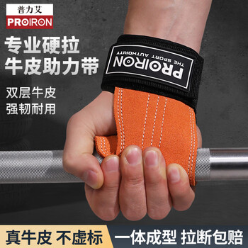 • PROIRON普力艾 助力带健身硬拉双层牛皮护掌防滑引体向上辅助 橙色M码