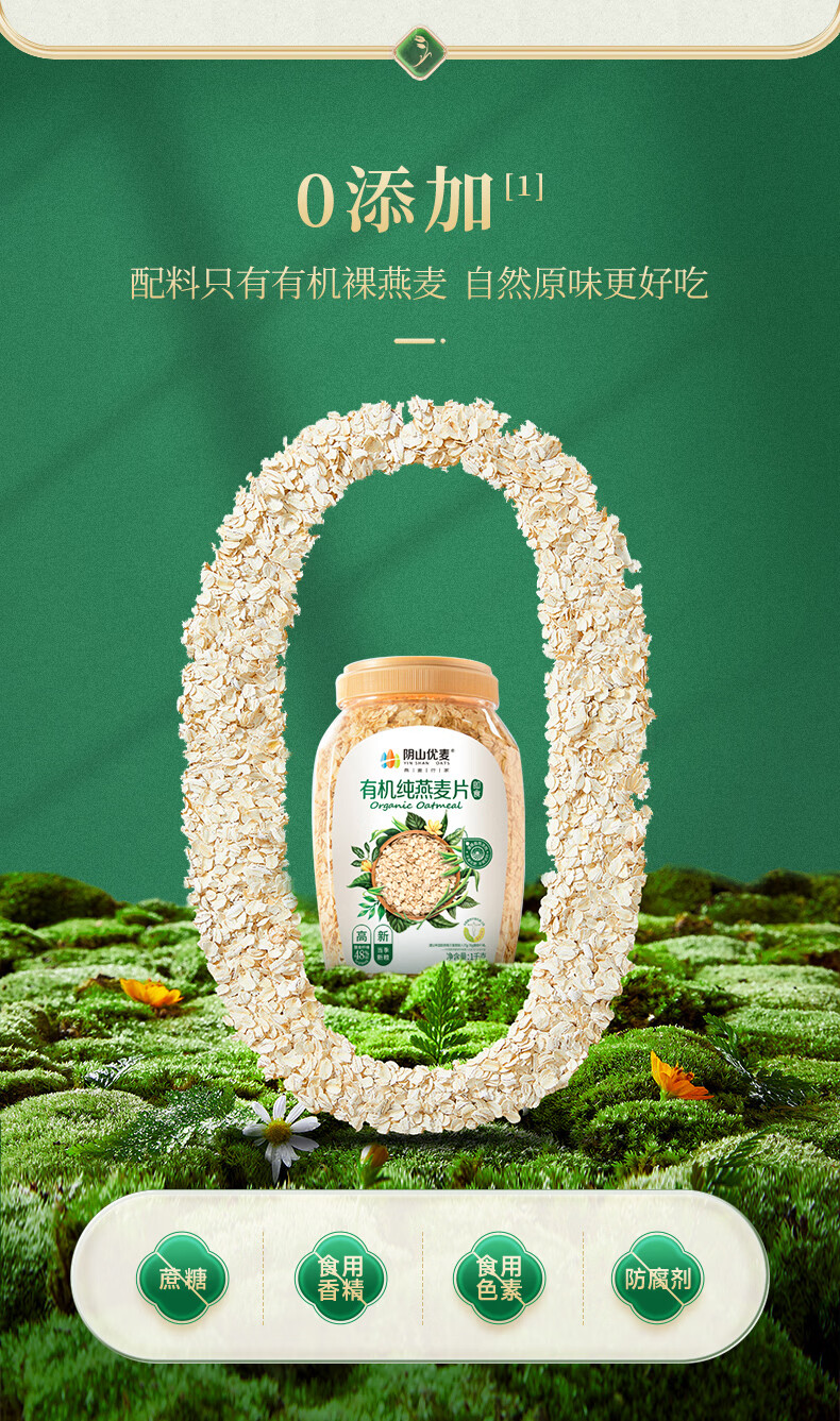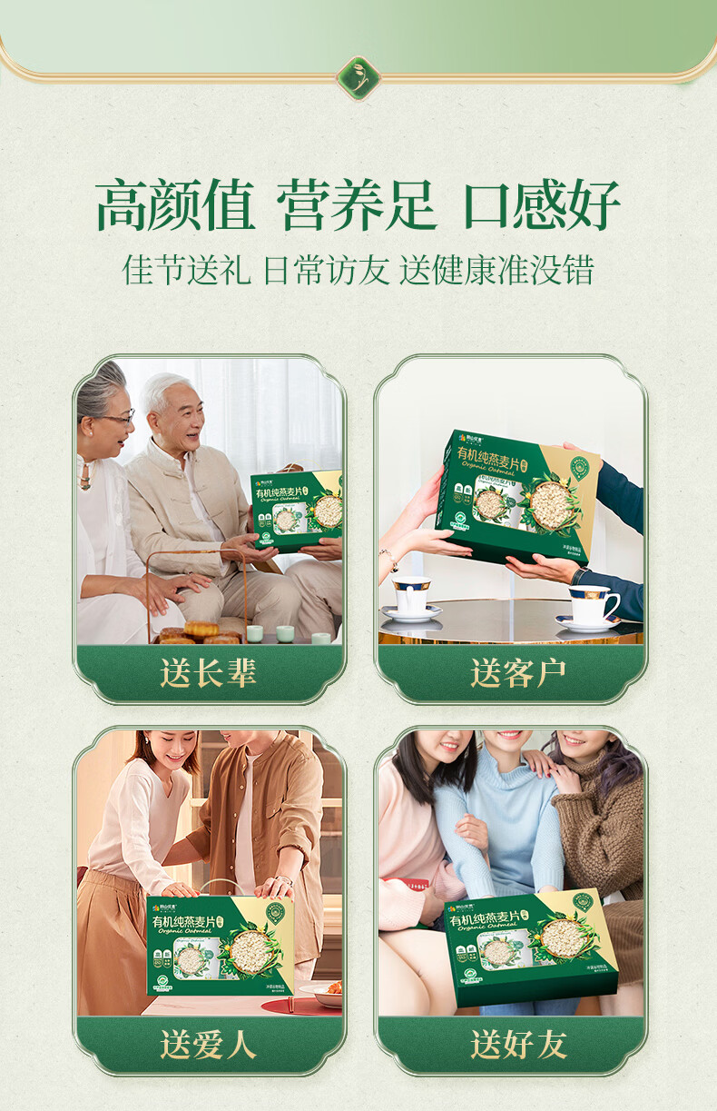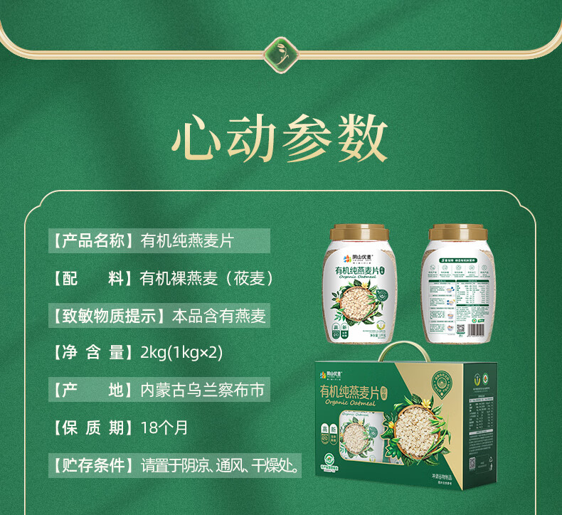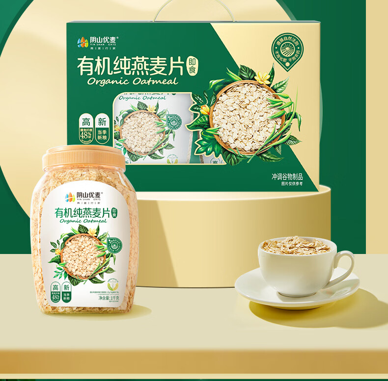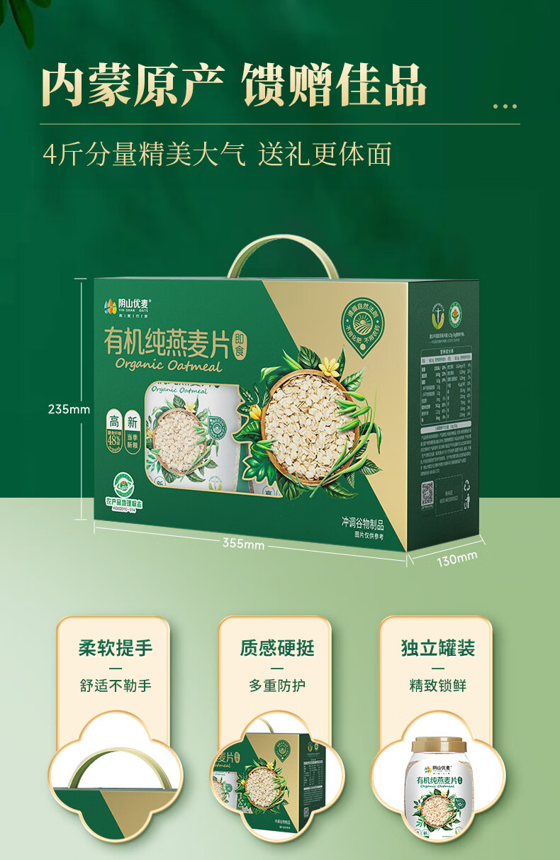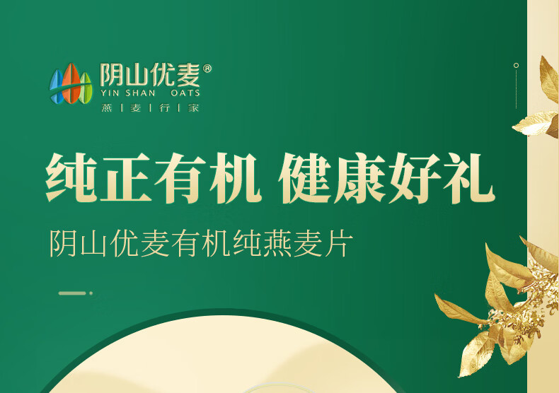 • 阴山优麦有机纯燕麦片2kg礼盒 年货礼盒送礼品 膳食纤维 高蛋白 零添加糖