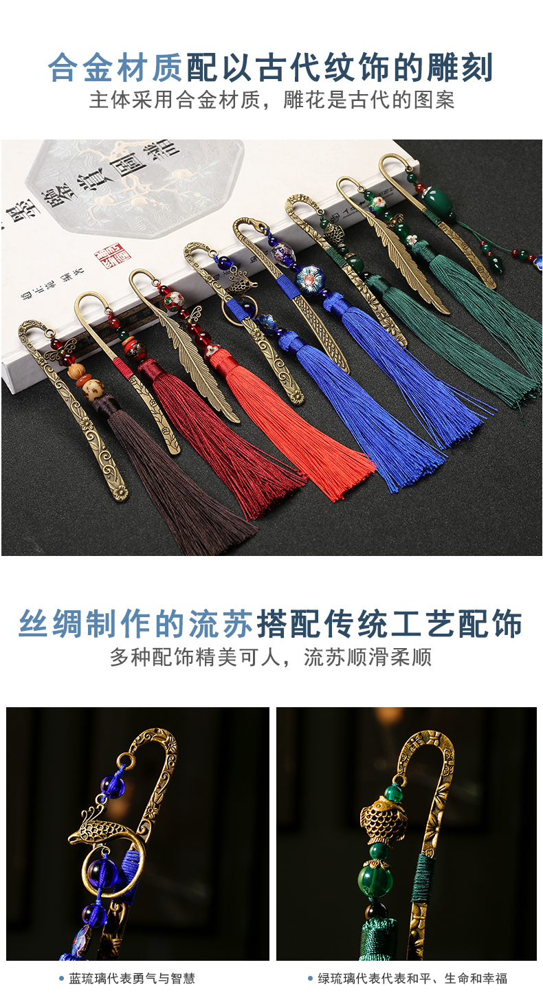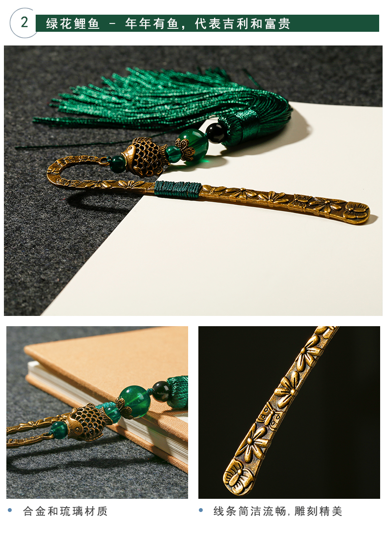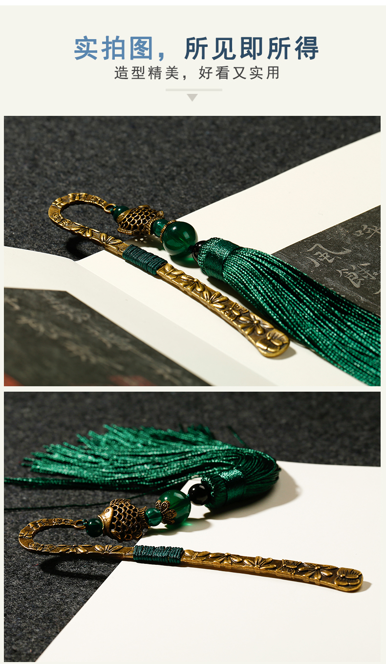 漢墨 复古风中国风铜艺书签 古典流苏绿花鲤鱼书签创意 礼物金属礼盒装   收藏