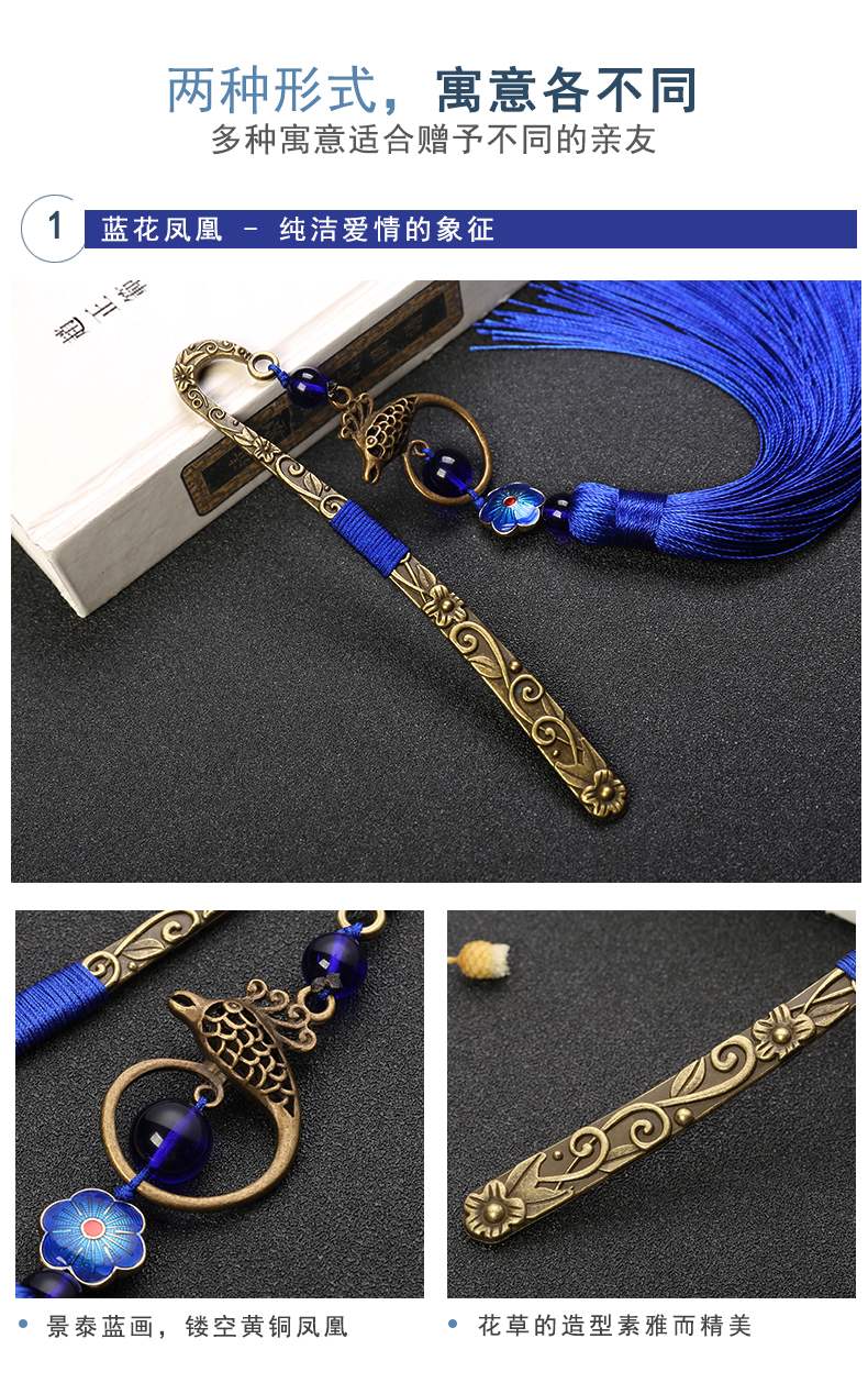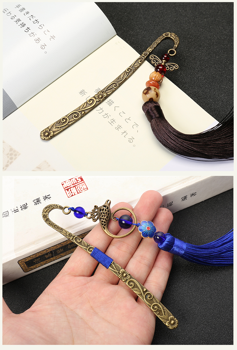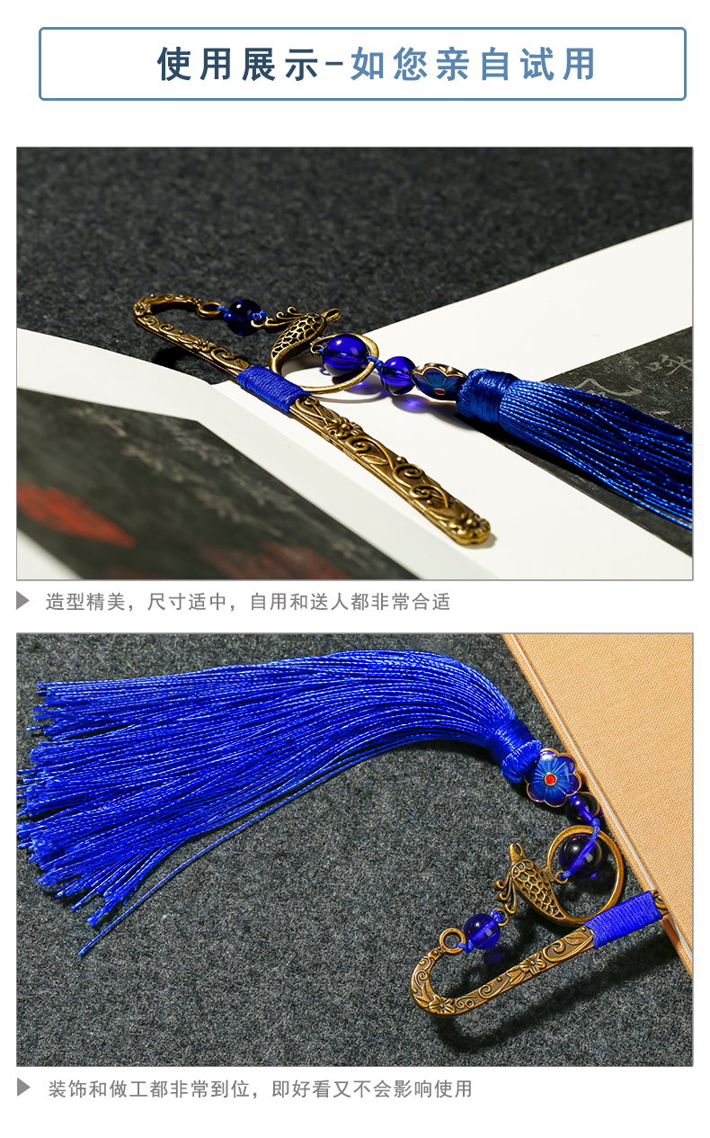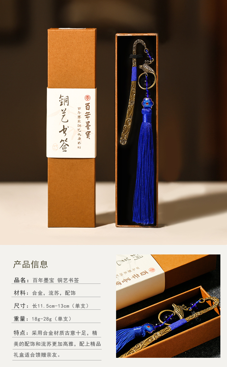 漢墨 复古风中国风铜艺书签 古典流苏绿花鲤鱼书签创意 礼物金属礼盒装   收藏
