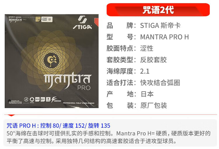 斯帝卡STIGA 乒乓球拍胶皮套胶内能MANTRA PRO H咒语梵语 黑色2.1   收藏