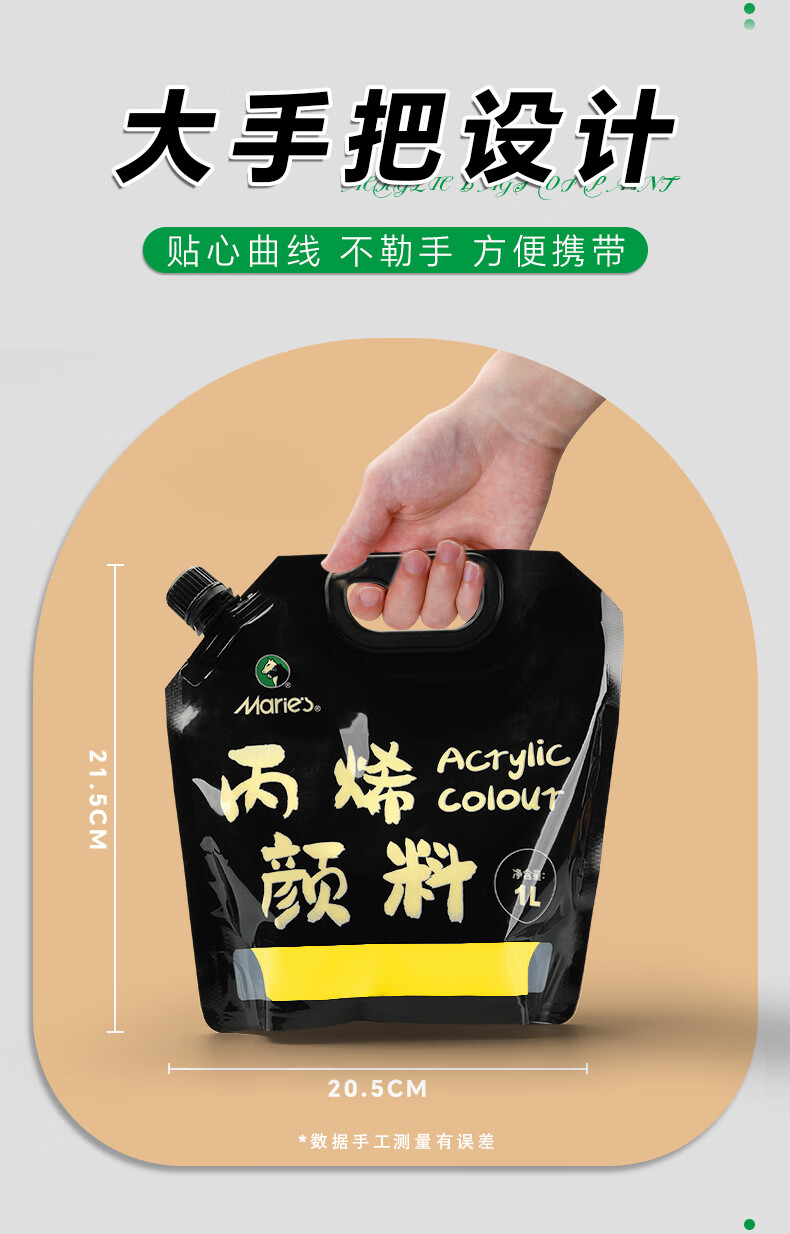 马利(Marie's)丙烯颜料袋装紫罗兰1L装墙绘防水染料不掉色防晒diy丙烯美术写生美育工具   收藏