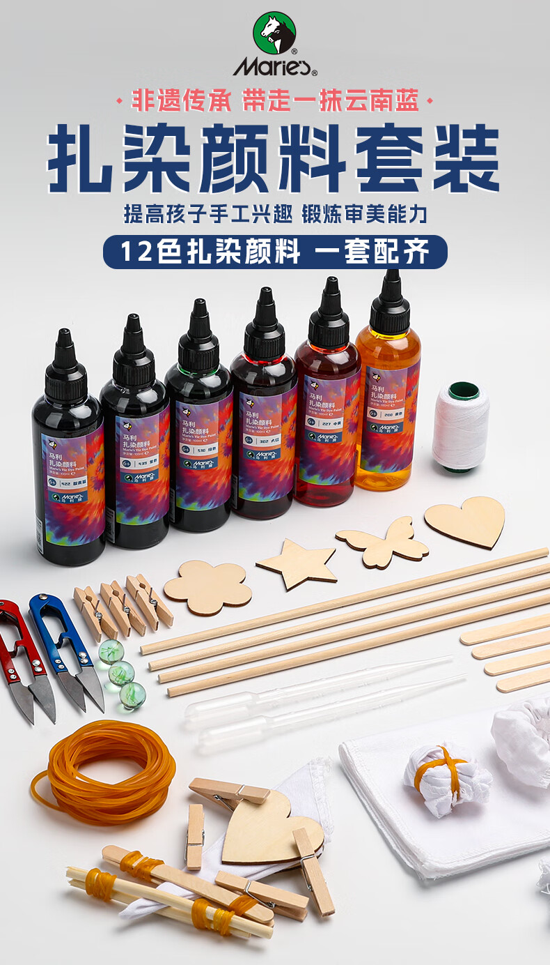 马利(Marie's)扎染颜料元青100ml手工DIY工具儿童植物拓染方巾冷染小学生手工课染色美术写生美育工具   收藏