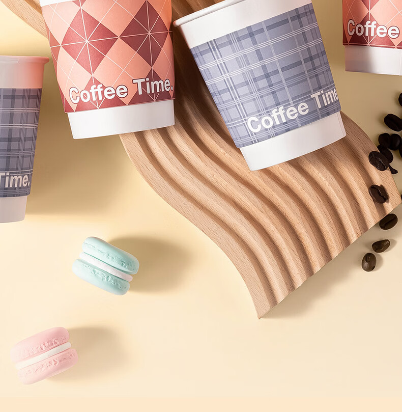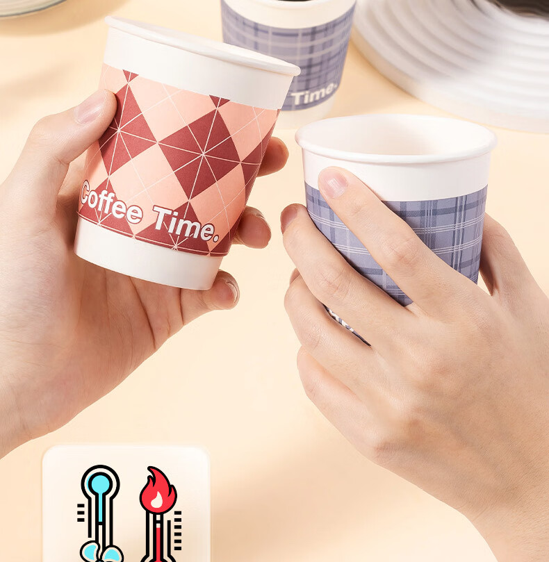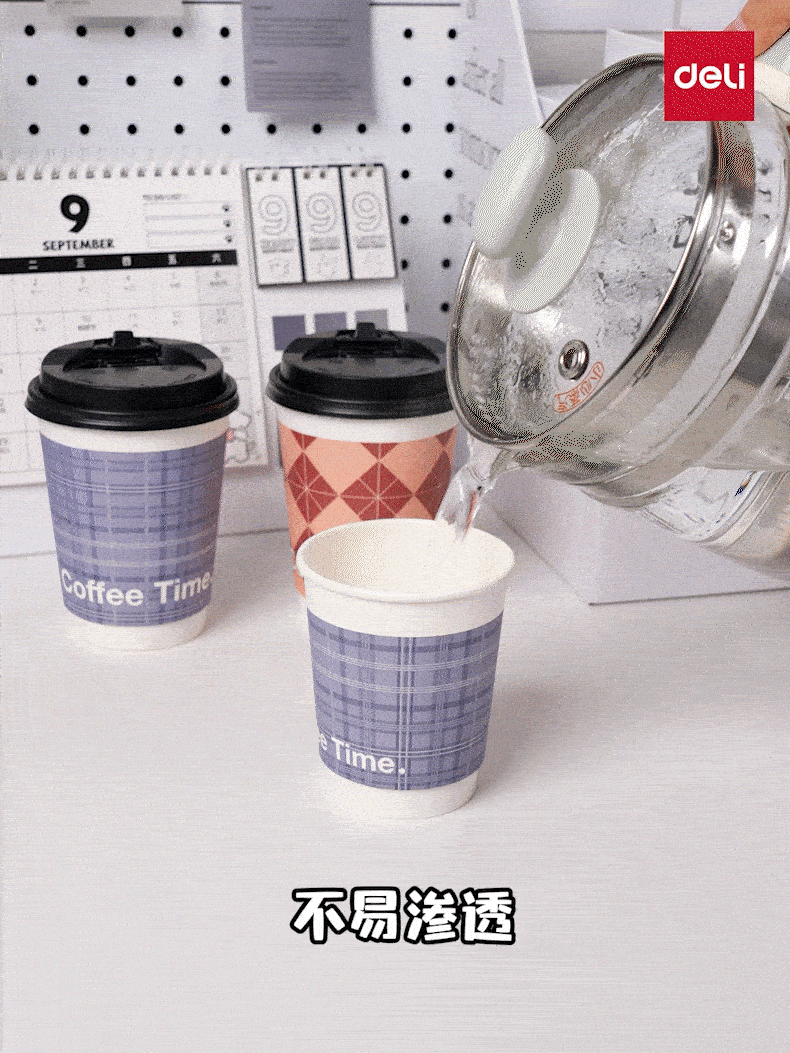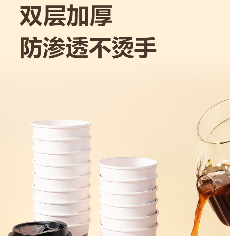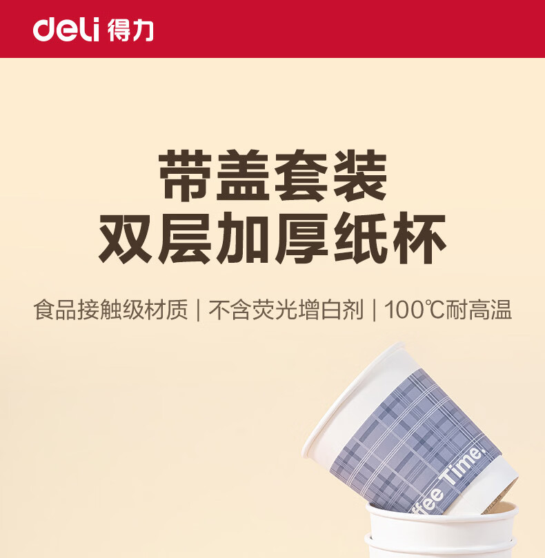 • 得力(deli)一次性带盖咖啡杯加厚防烫纸杯子奶茶豆浆热饮杯280ml 50只装