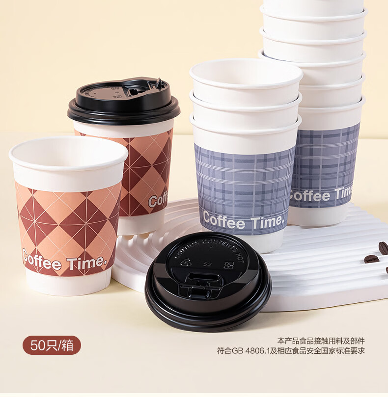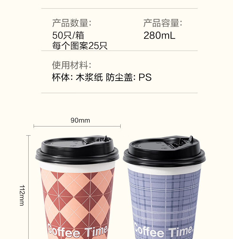 得力(deli)一次性带盖咖啡杯加厚防烫纸杯子奶茶豆浆热饮杯280ml 50只装   收藏
