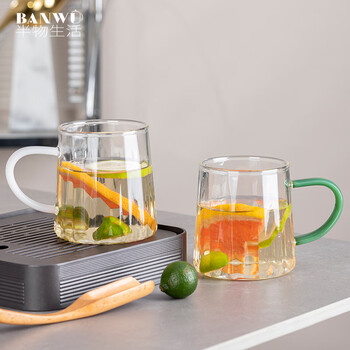 • 半物生活高硼硅玻璃杯耐高温玻璃水杯茶杯耐热带把绿茶杯家用喝水杯子套装