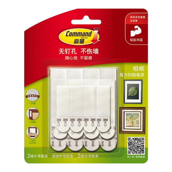 • 3M【全网低价】3M双面胶带办公粘贴相框魔力扣挂画超值装照片墙壁挂强力10组超值装