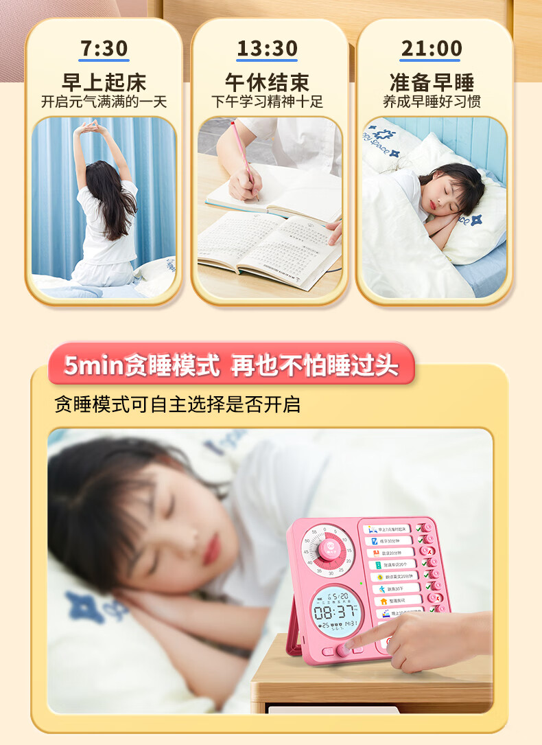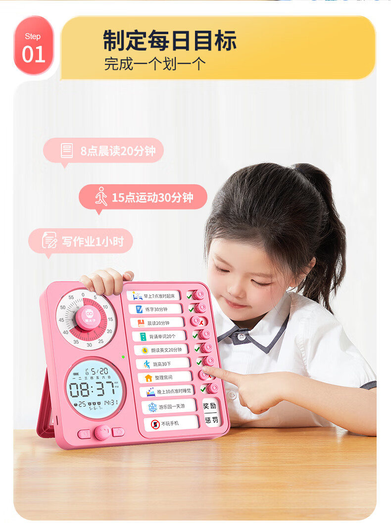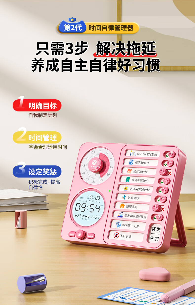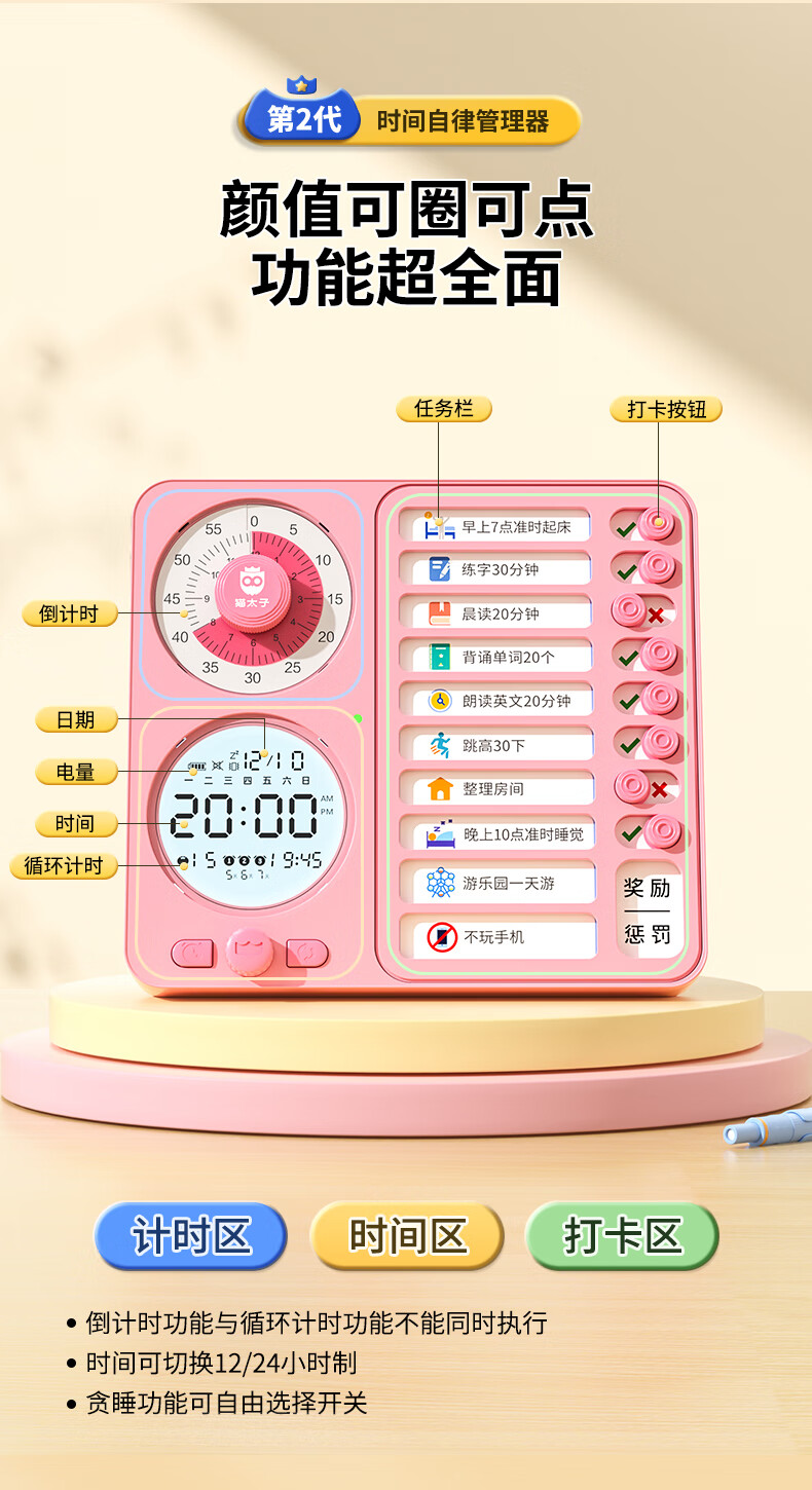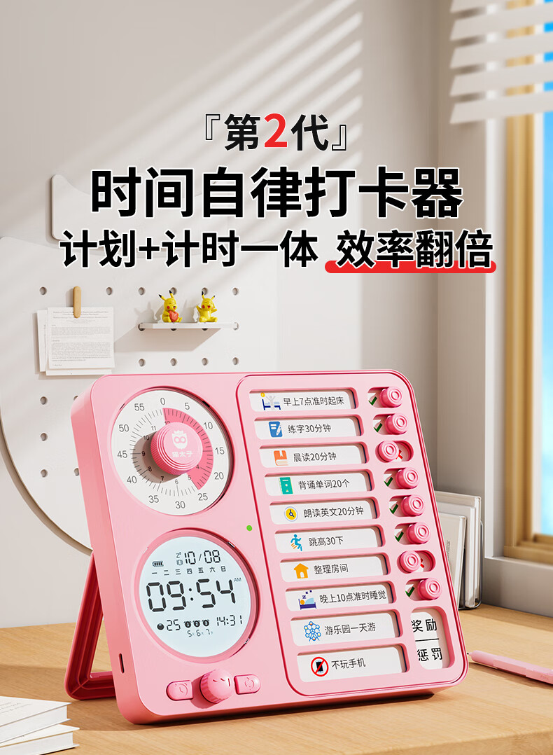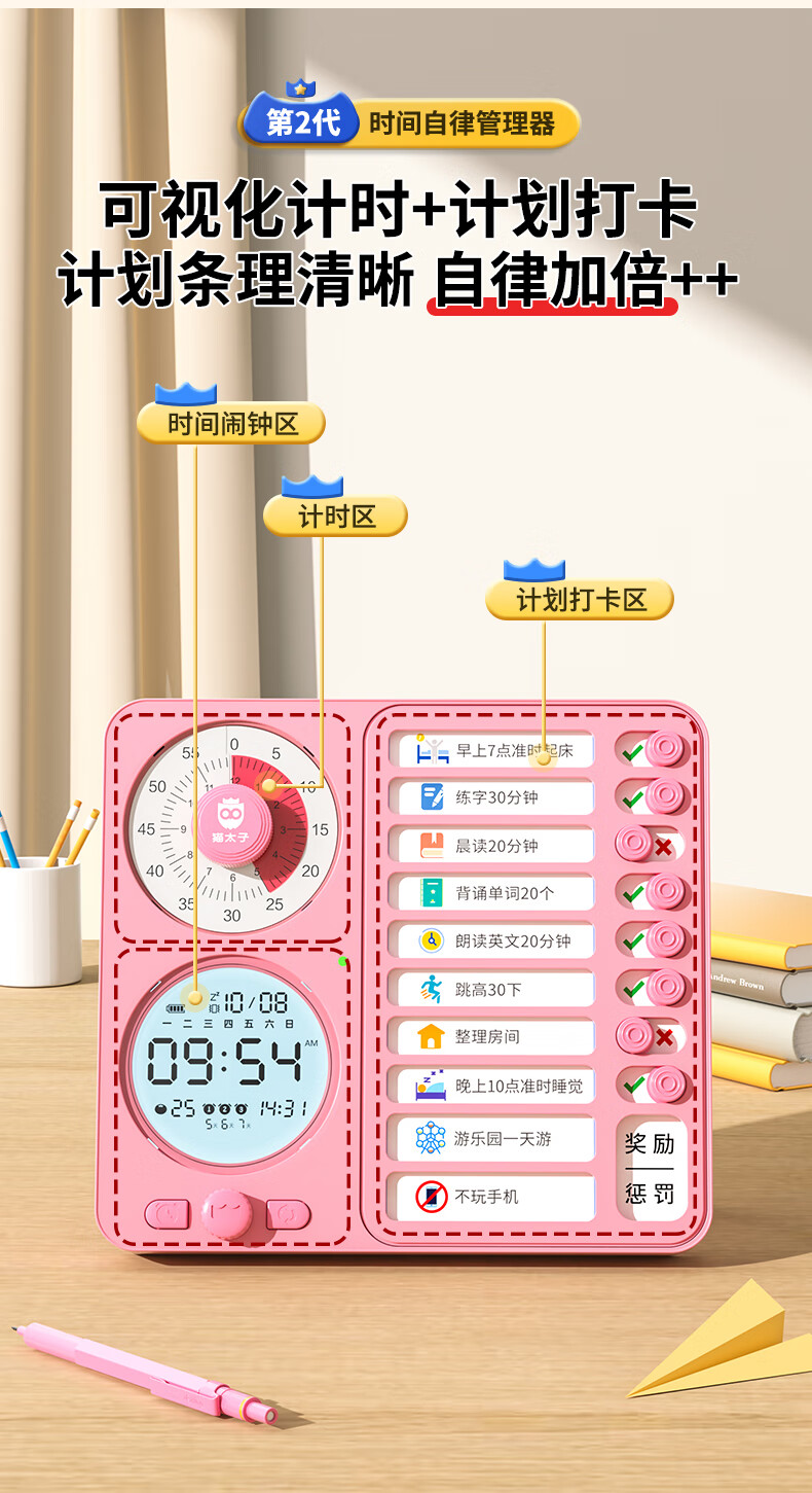 • 猫太子自律打卡神器学生开学学习计划安排表打卡器可视化时间管理器儿童计时器闹钟倒计时提醒器打卡本