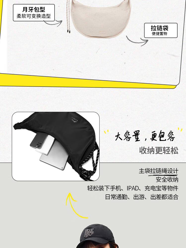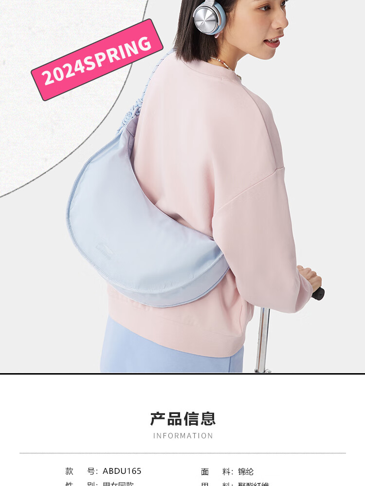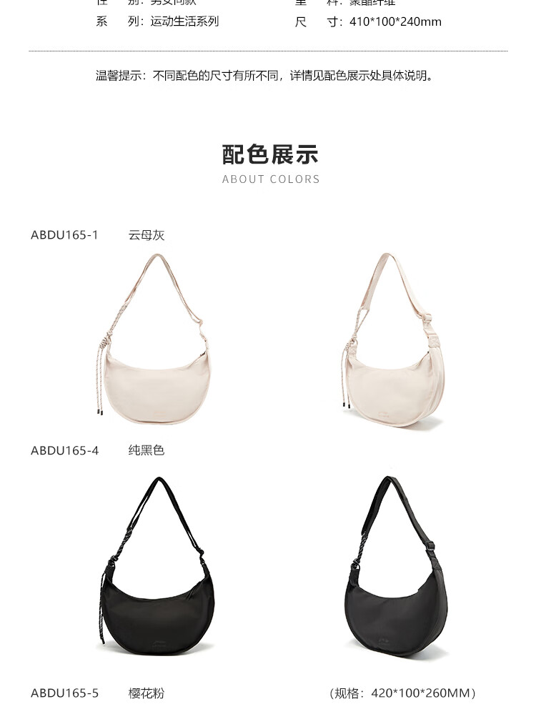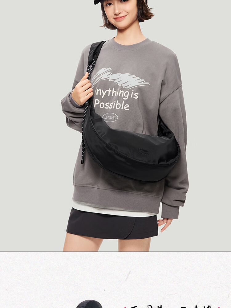 • 李宁运动生活系列男女同款月牙包潮流休闲斜挎包ABDU165