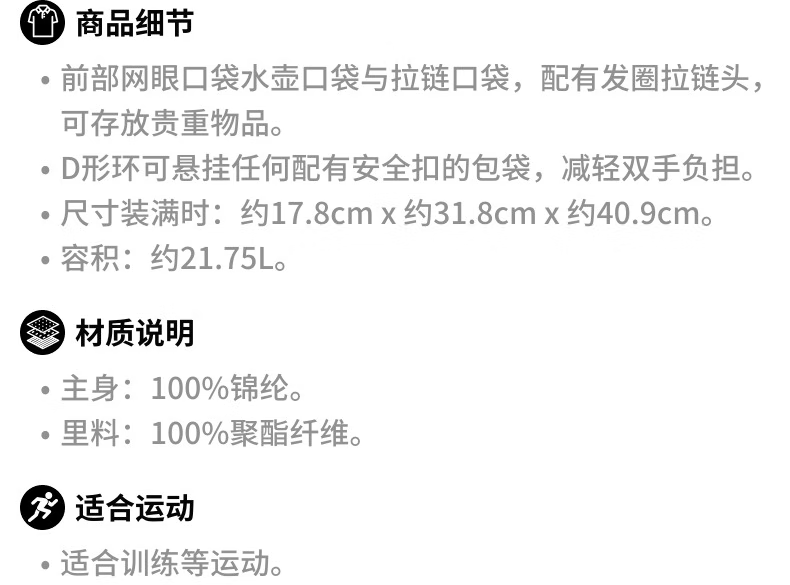 供应商:京东 品牌:安德玛(Under Armour) 产地:中国大陆 重量:0.500 销售单位:个 包装清单:包*1 吊牌*1 售后信息:不支持7天无理由退货