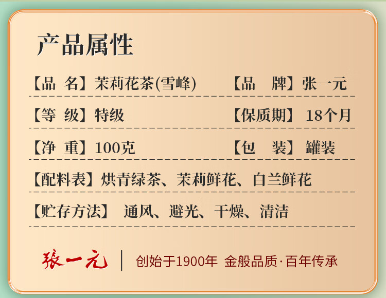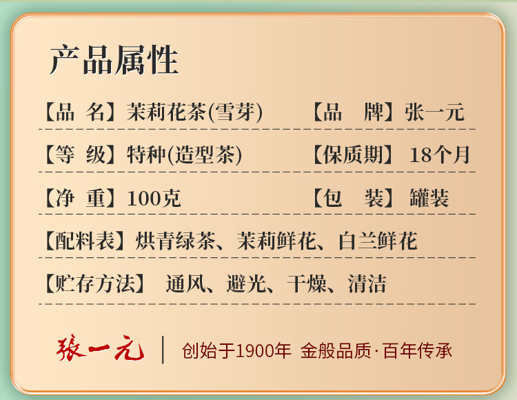 供应商:京东 品牌:张一元 产地:中国大陆 重量:0.640 销售单位:组 包装清单:张一元特种茉莉雪芽100g*1、张一元特级茉莉雪峰100g*1 售后信息:不支持7天无理由退货
