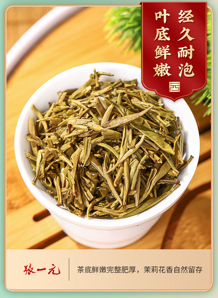 • 张一元茉莉花茶特种雪芽100g+特级雪峰100g配手提袋 年货送礼礼赠礼品