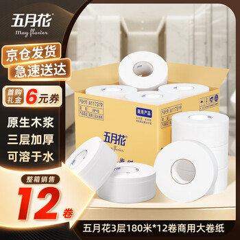 供应商:京东 品牌:五月花 产地:中国大陆 重量:9.340 销售单位:箱 包装清单:五月花大卷纸有芯3层180米*12卷 售后信息:不支持7天无理由退货