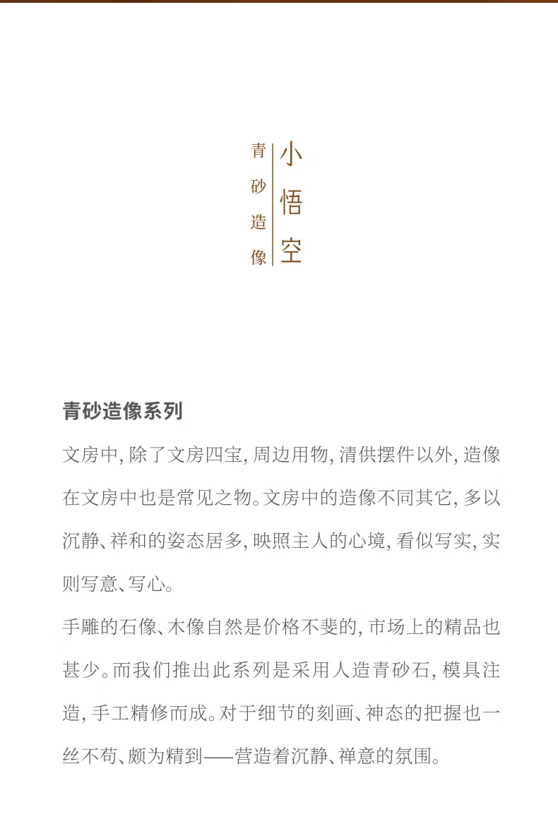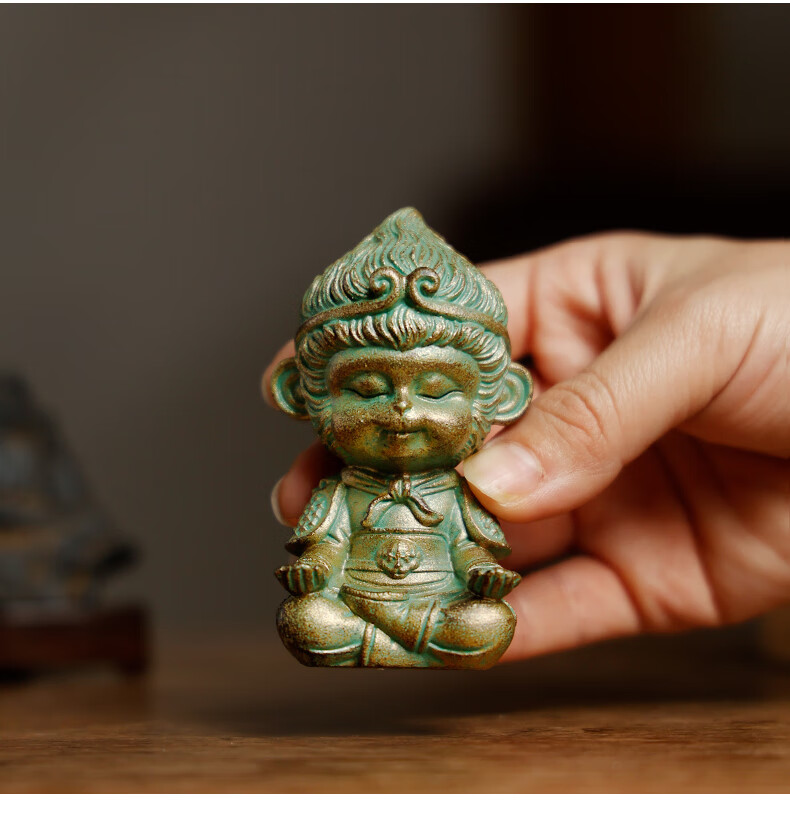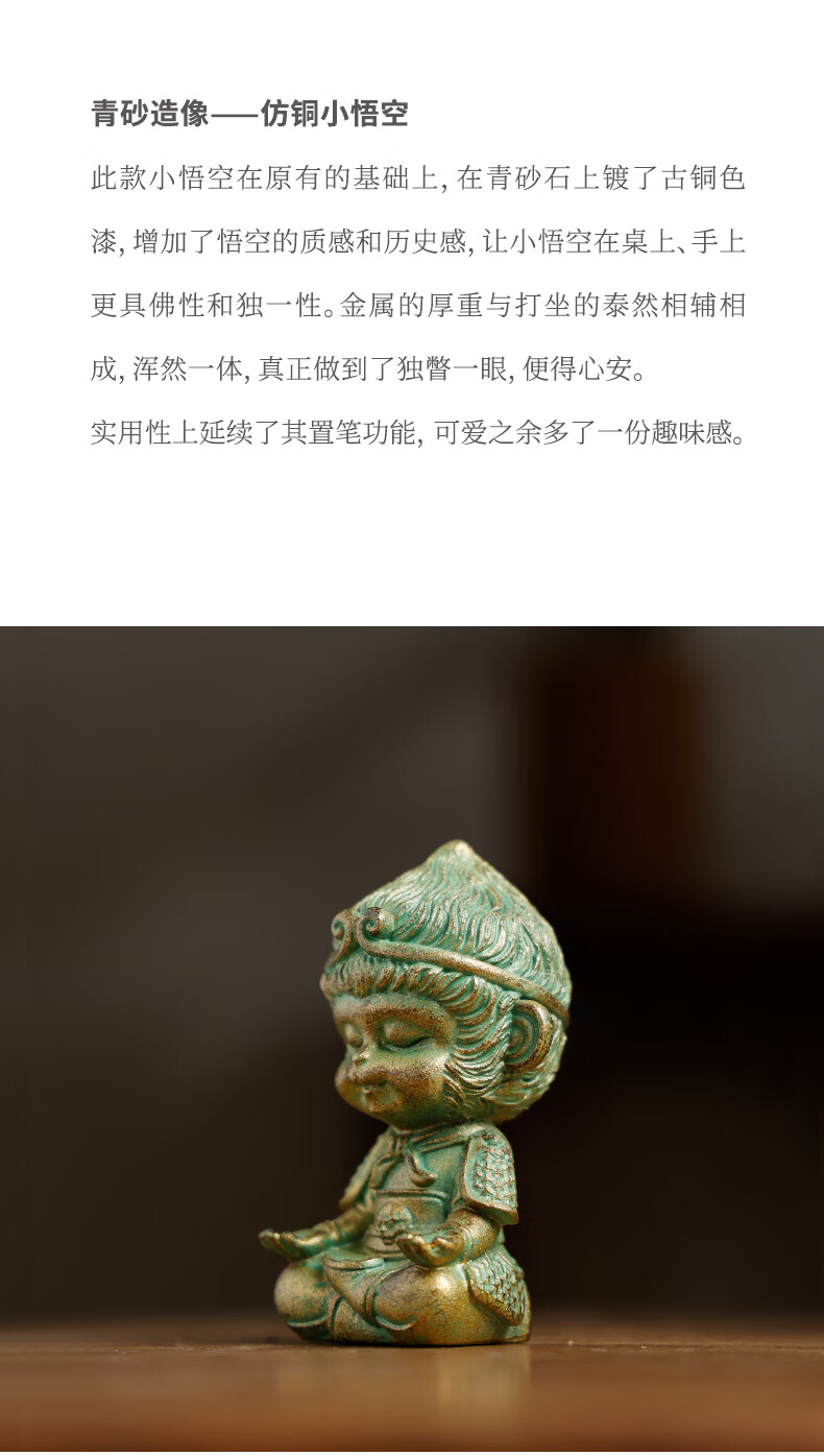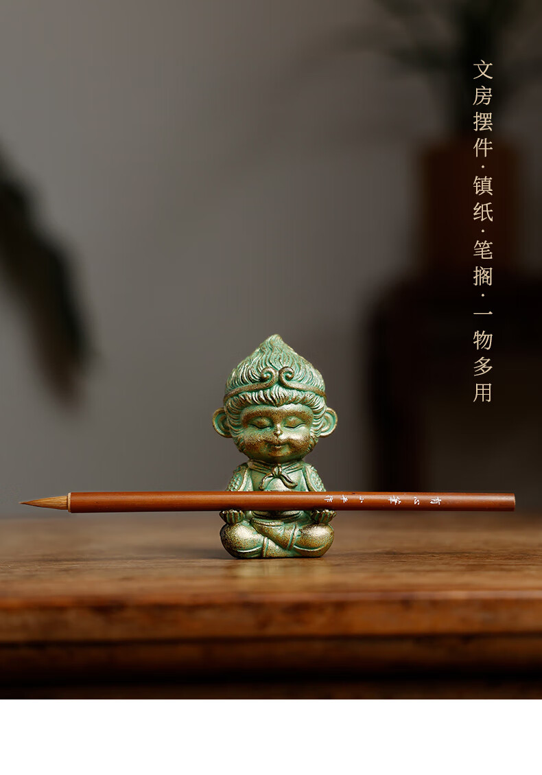 • 漢墨 青砂造像仿铜小悟空 镇尺书房创意吉祥物小摆件镇纸石 文房四宝书法礼品礼物笔搁