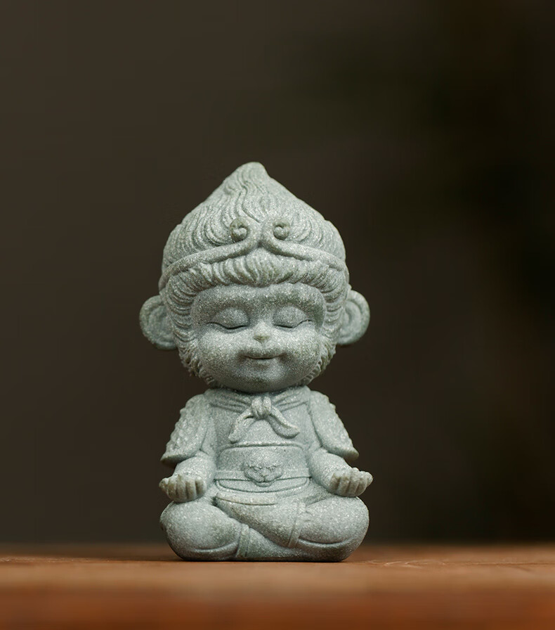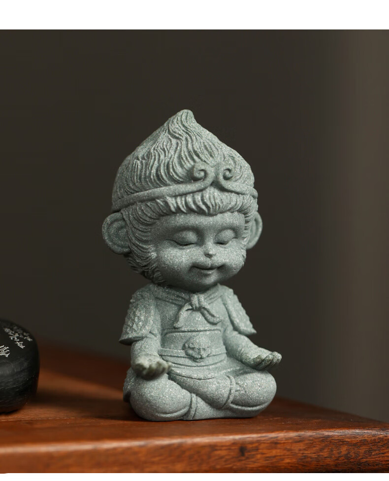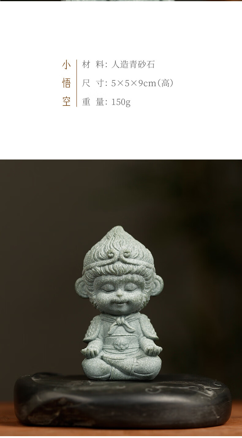 漢墨 青砂造像仿铜小悟空 镇尺书房创意吉祥物小摆件镇纸石 文房四宝书法礼品礼物笔搁   收藏
