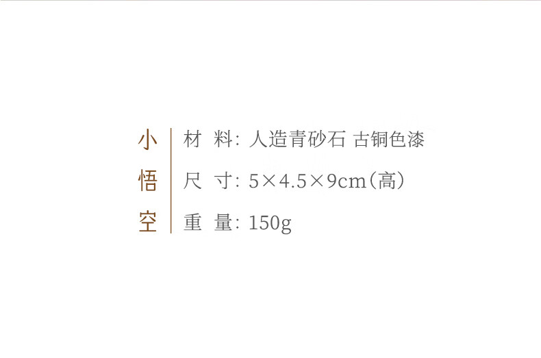 供应商:京东 品牌:漢墨(HANMO) 产地:中国大陆 重量:0.127 包装清单:青砂仿铜造像 小悟空*1 售后信息:不支持7天无理由退货