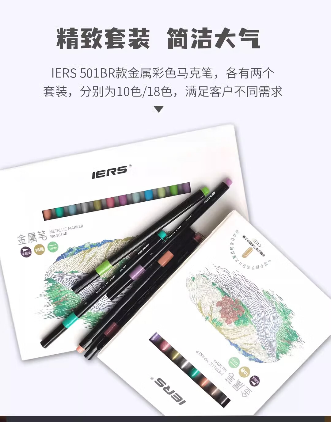 • 艾尔斯IERS501BR金属彩色记号笔套装手帐装饰涂鸦DIY相册笔小清新马克笔绘画涂色高光笔M20美术写生