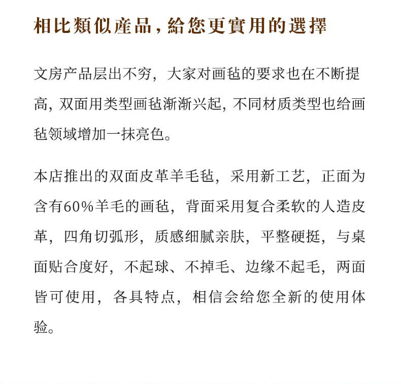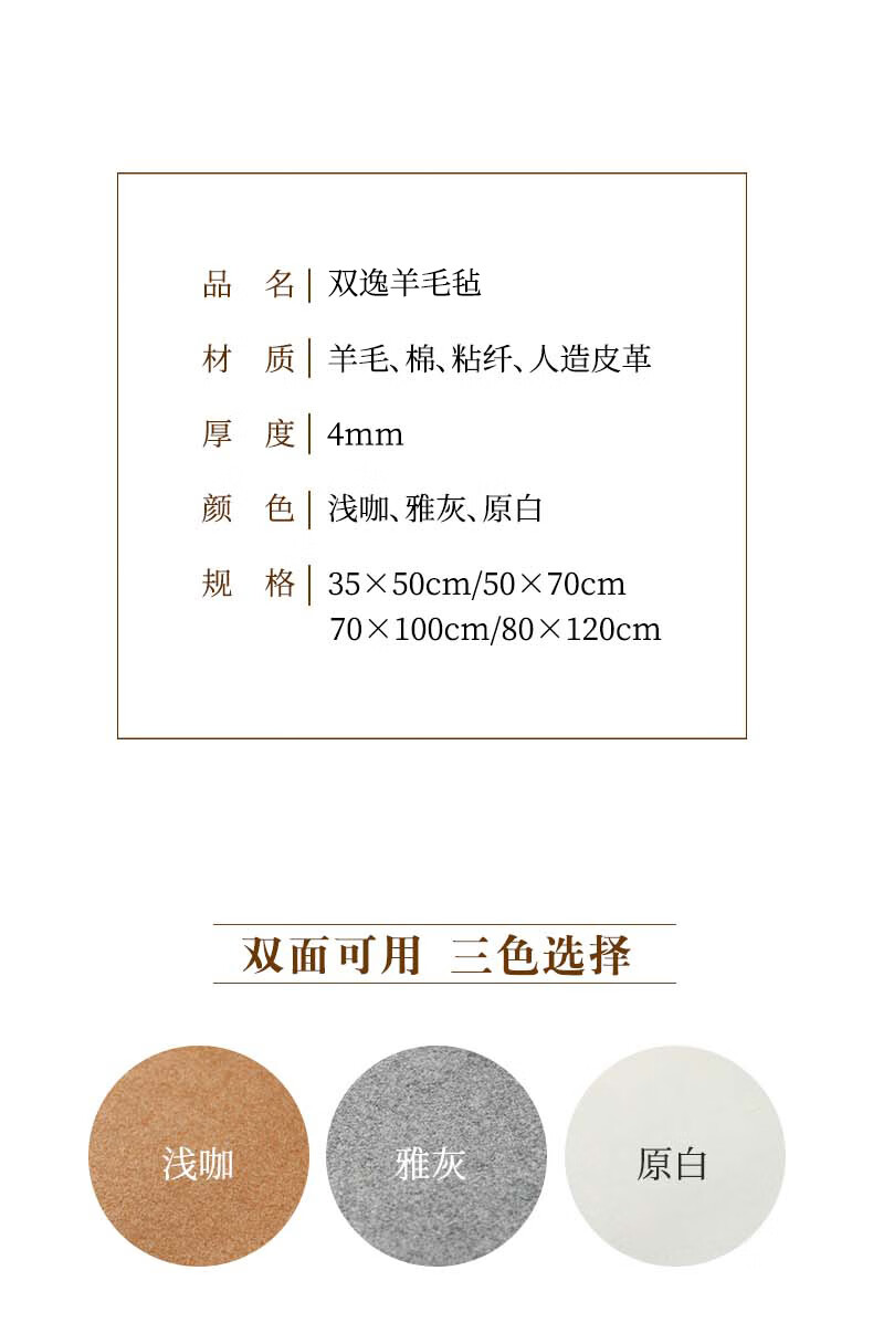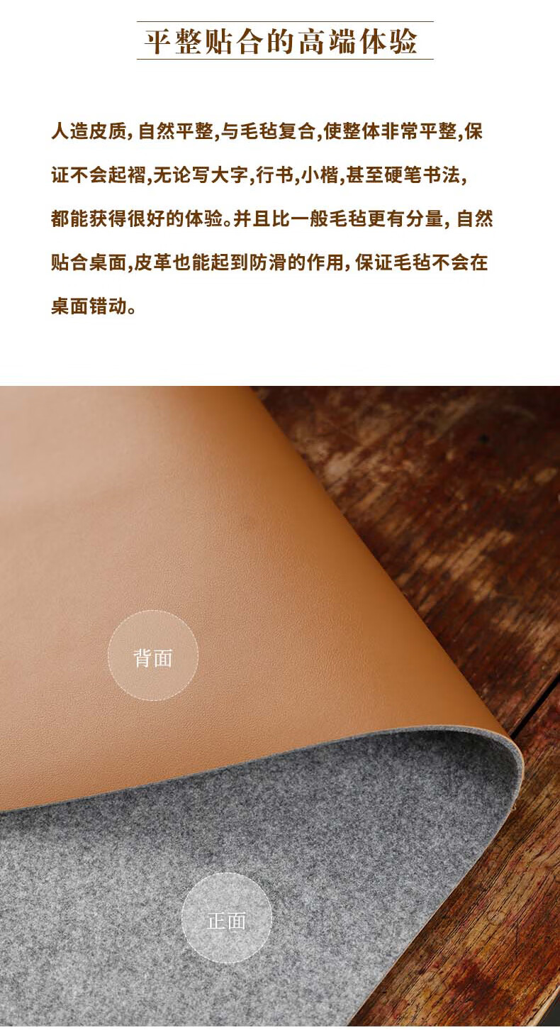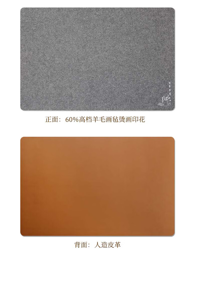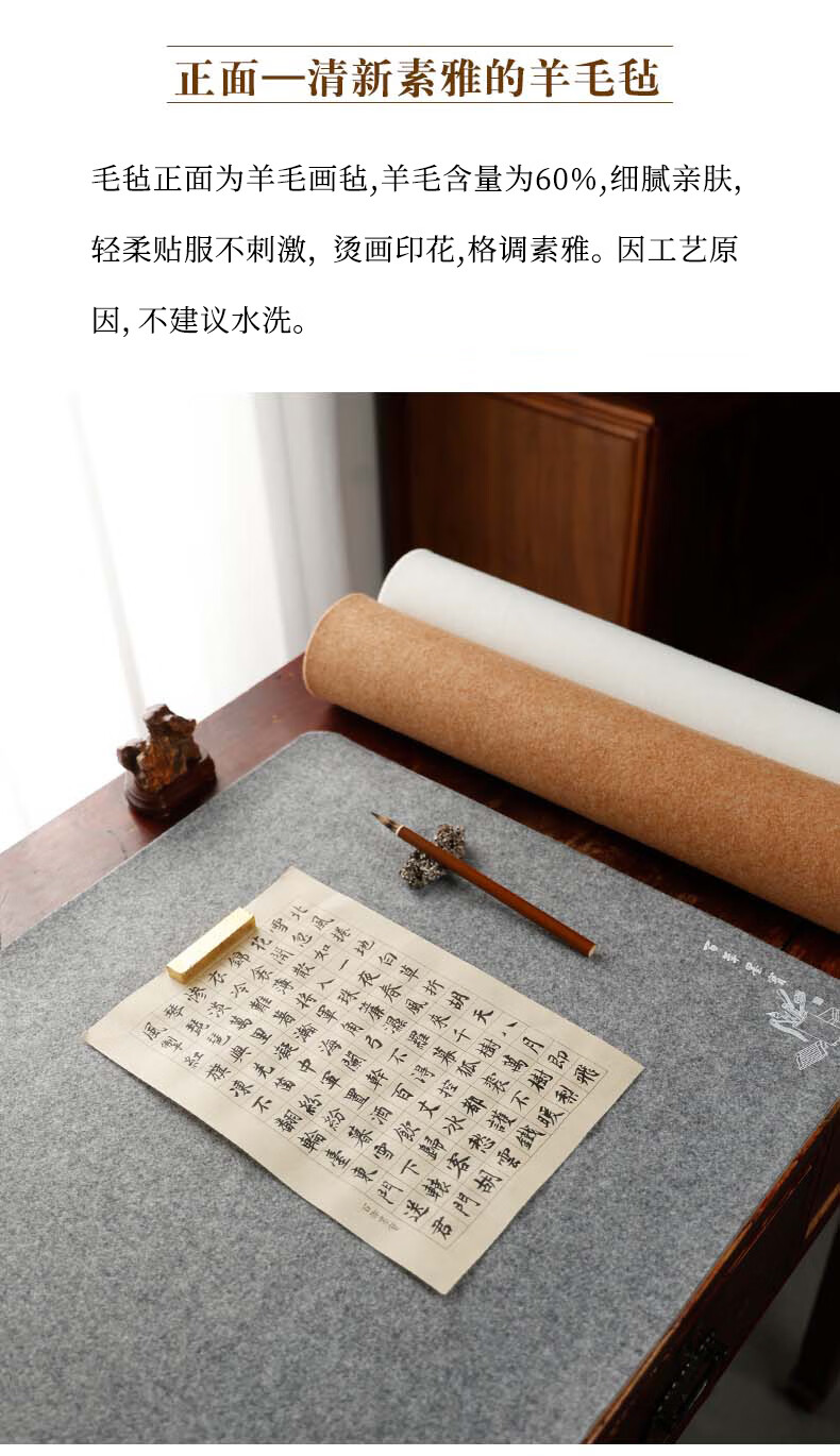 漢墨 双逸皮革羊毛毡 双面可用加厚款书法国画浅咖色50*70cm 文房四宝写毛笔字用桌垫毛毡布   收藏