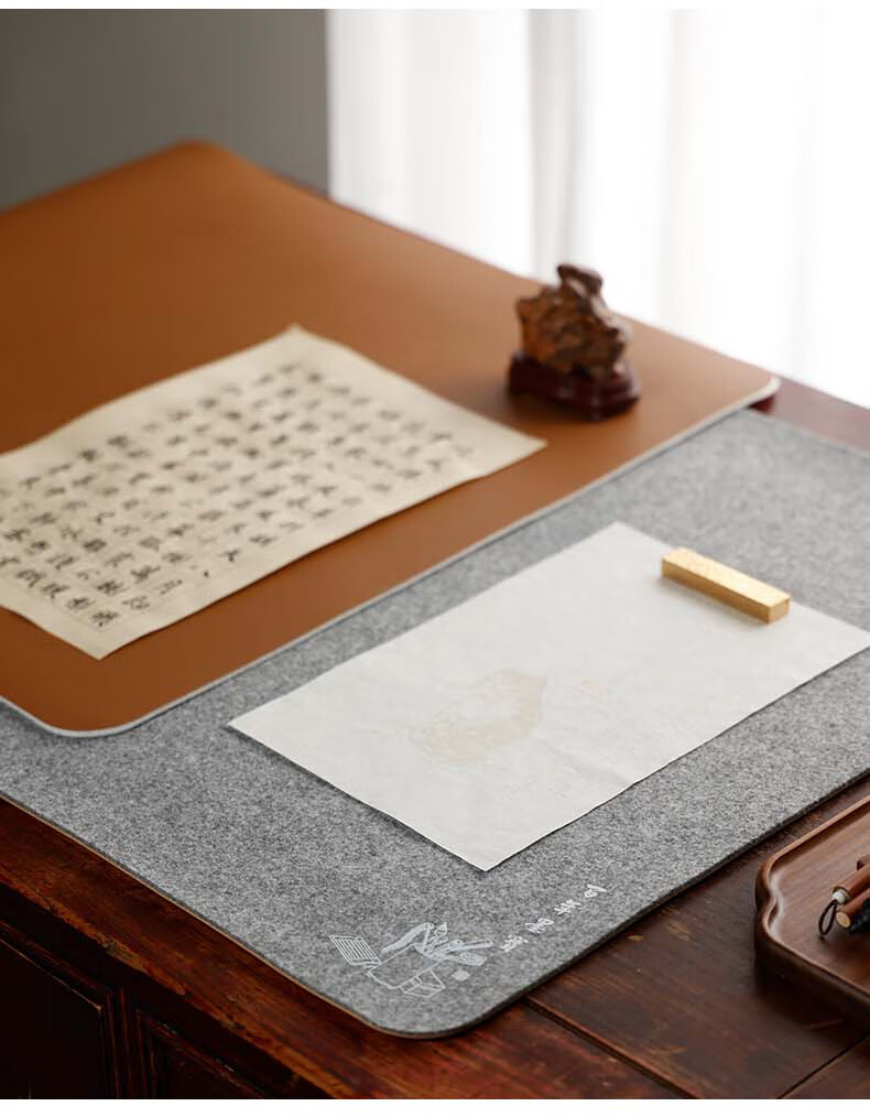 • 漢墨 双逸皮革羊毛毡 双面可用加厚款书法国画浅咖色50*70cm 文房四宝写毛笔字用桌垫毛毡布