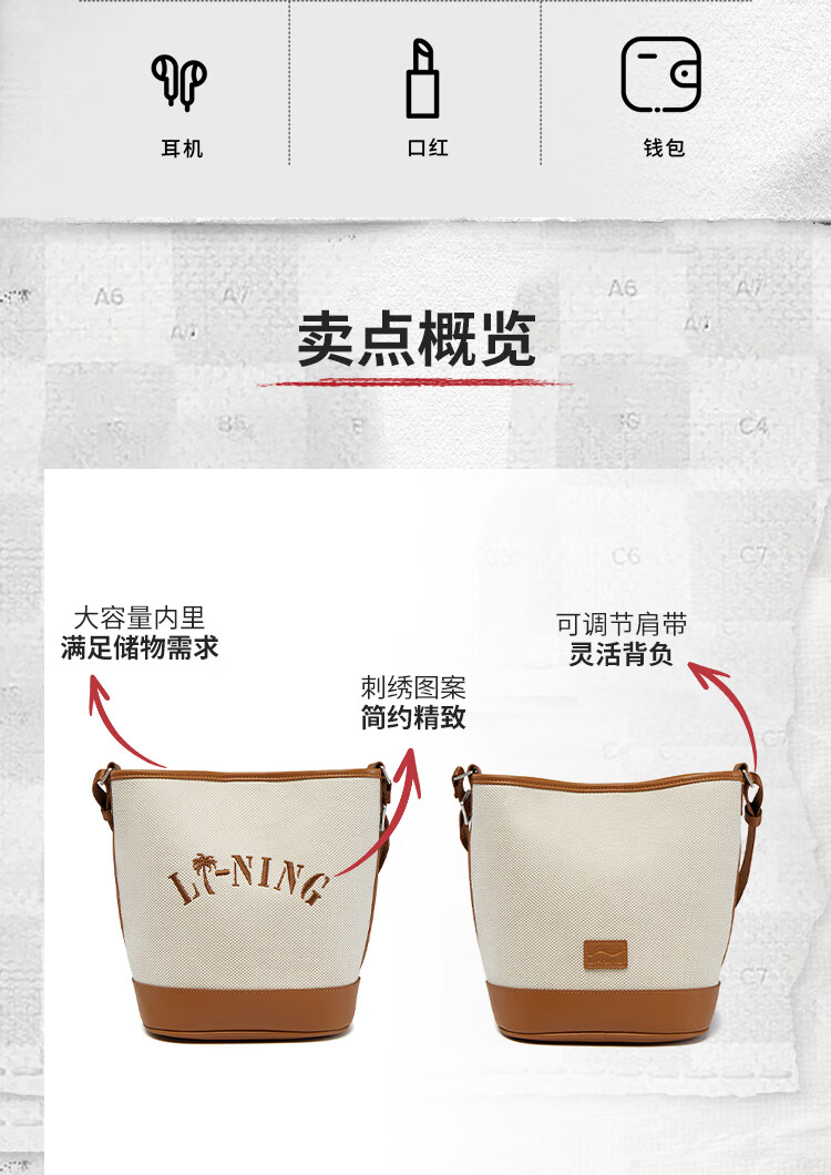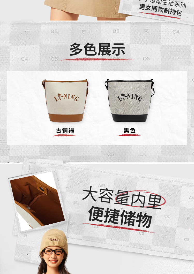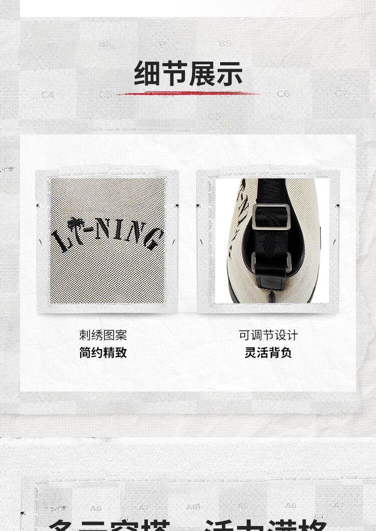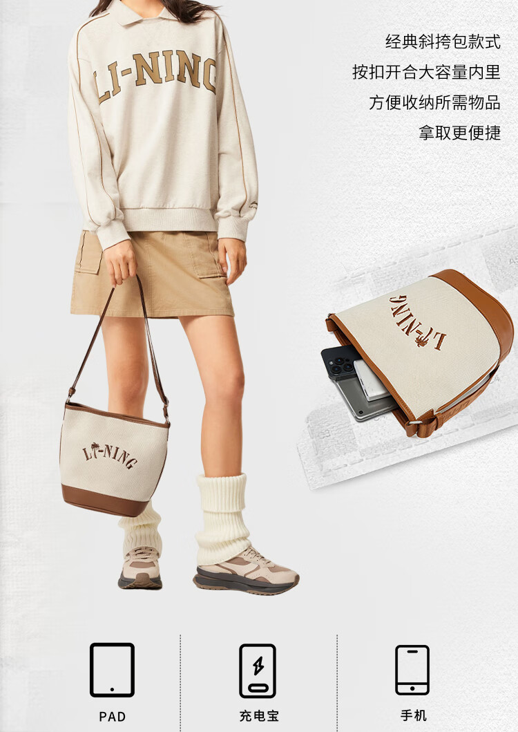 • 李宁斜挎包情侣款2025新款复古时尚刺绣休闲运动单肩包ABDV141