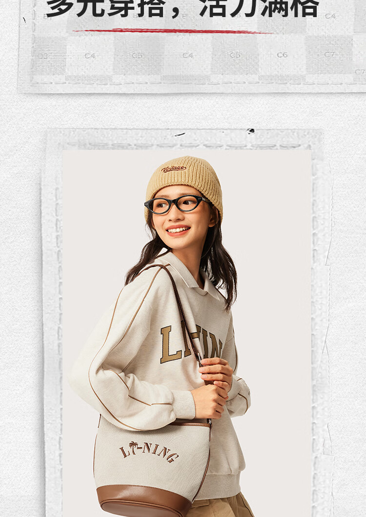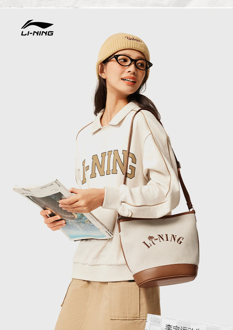 李宁斜挎包情侣款2025新款复古时尚刺绣休闲运动单肩包ABDV141   收藏