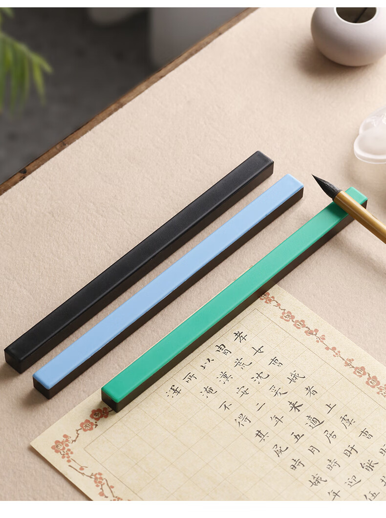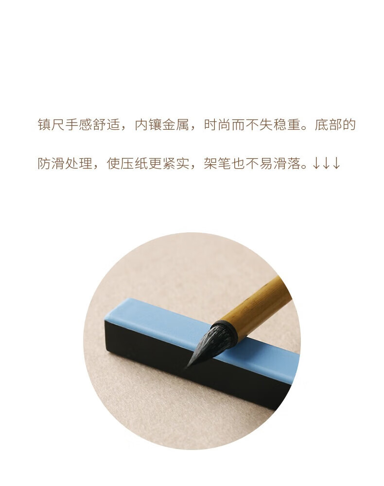 • 漢墨 ABS铸铁镇尺镇纸 学生初学者多功能雅黑色单支装文镇 文房四宝毛笔书法宣纸用笔架