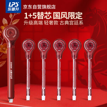 乐普升修正带笔式涂改带可替换芯创意笔形改正带便携高颜值学生文具小学生初中生专用9189K 1+5芯 复古红   收藏