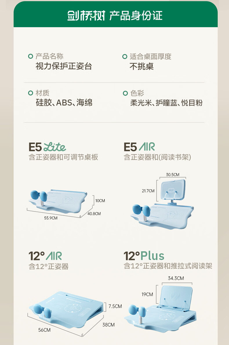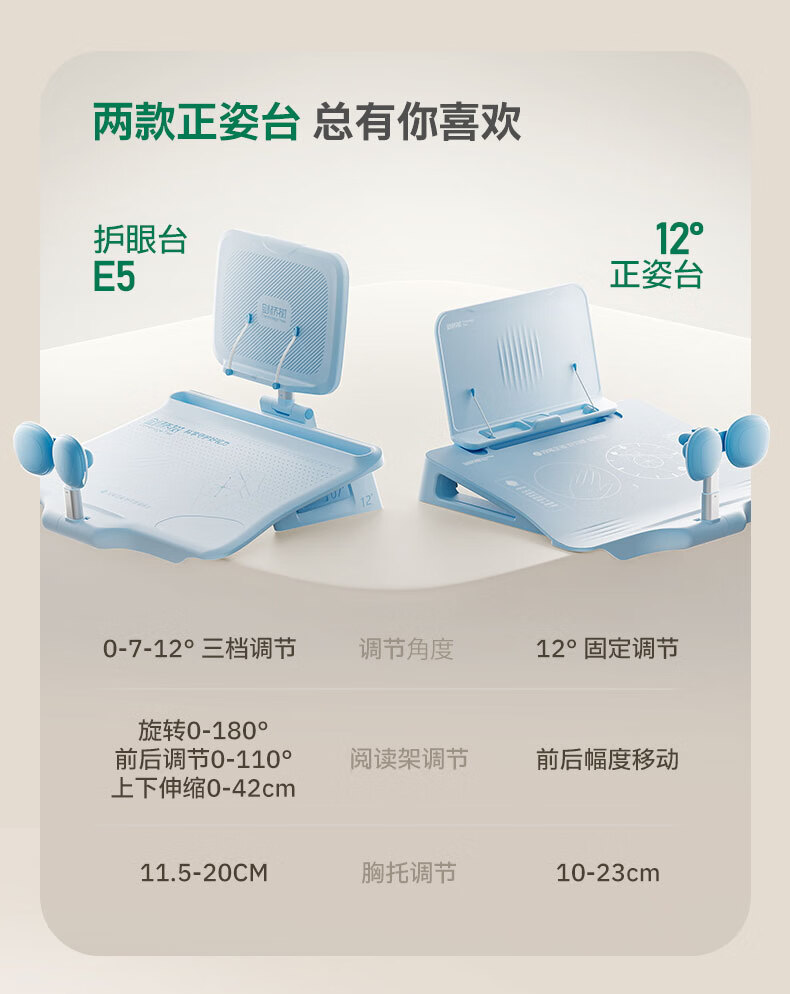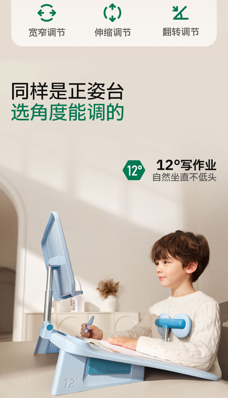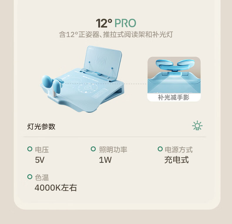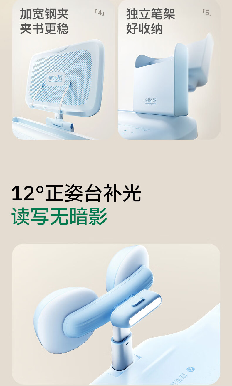 • 剑桥树12°坐读写坐姿矫正器儿童写字姿势纠正小学生写作业防低头防驼背阅读书架开学礼物 西柚粉