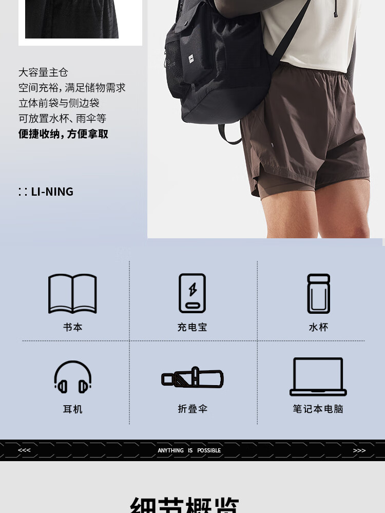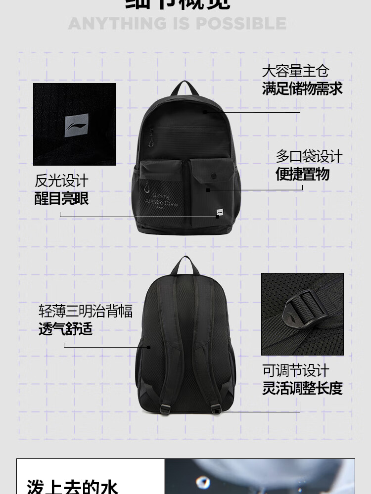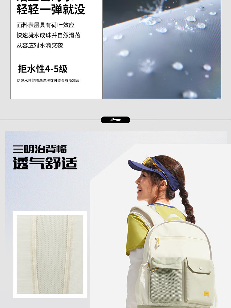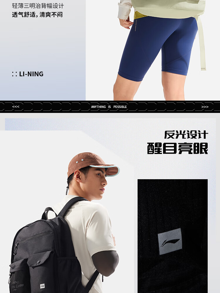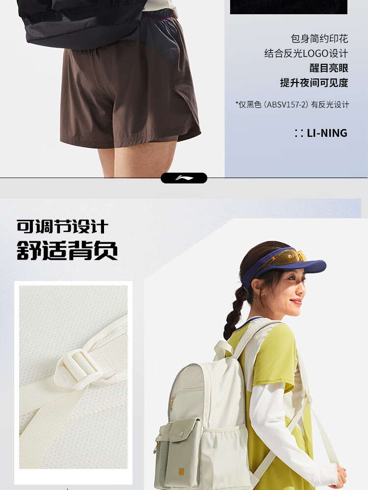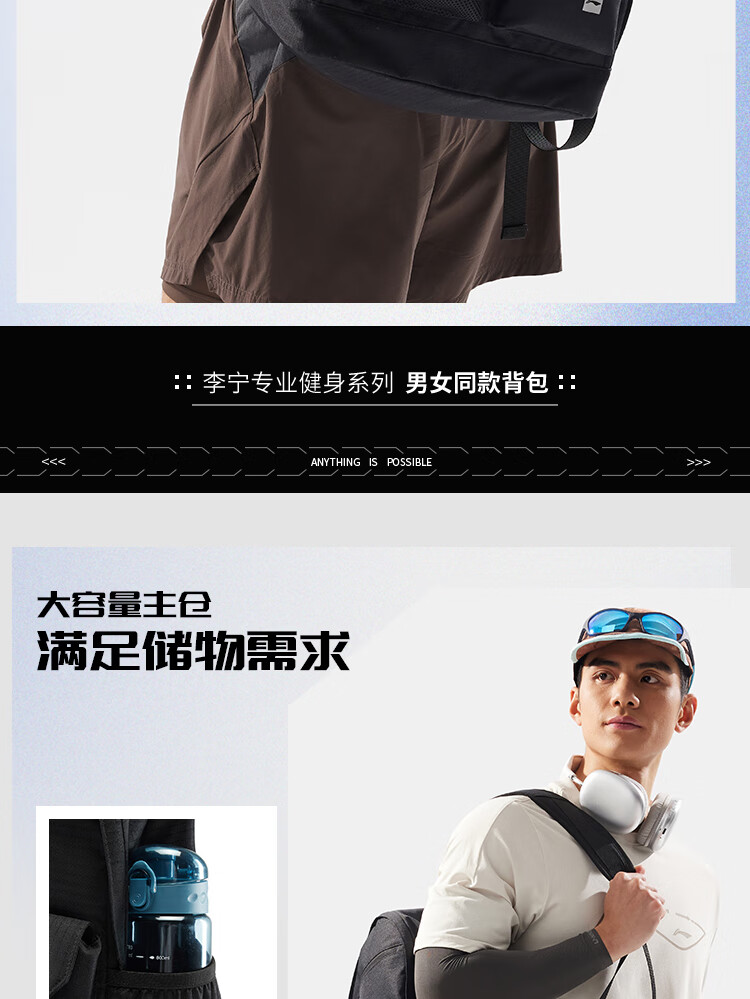 李宁健身系列丨防泼水运动双肩包男女同款大容量轻便旅行背包ABSV157   收藏