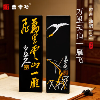 曹素功上海曹素功墨条墨块万里云山一雁飞125g油烟墨101 松烟墨选烟墨 书画墨锭文房四宝【描金】   收藏
