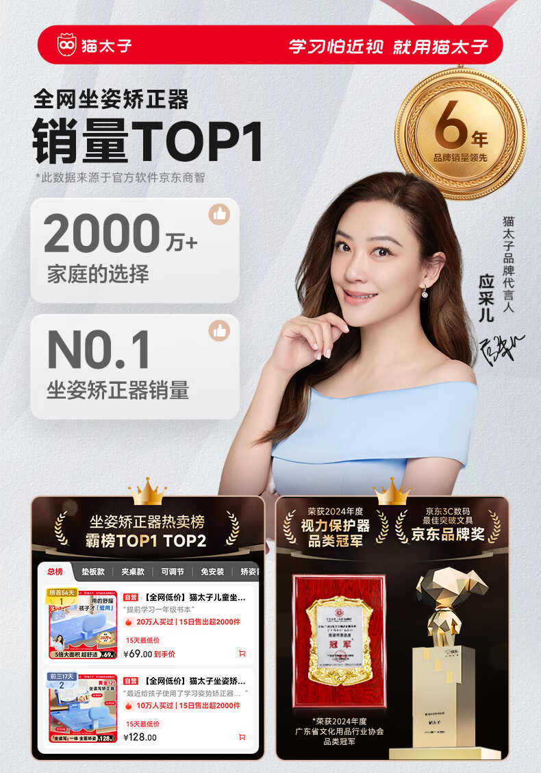 猫太子黄金12°坐姿矫正器儿童写字姿势纠正器小学生写作业防近视低头学习桌面款神器 生日礼物蓝   收藏