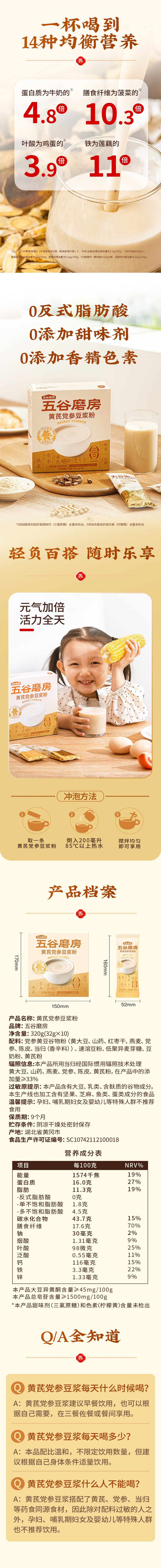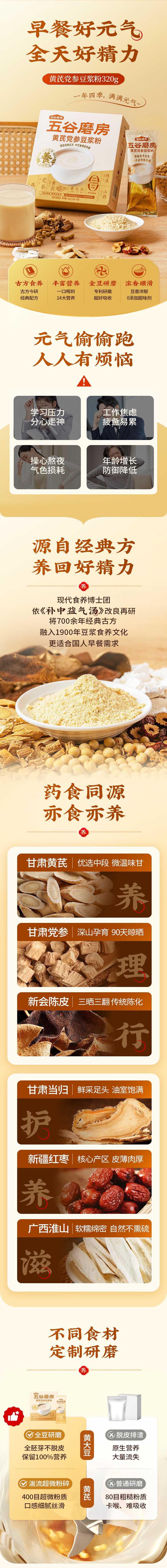 • 五谷磨房黄芪党参豆浆粉即冲早餐豆浆粉320g