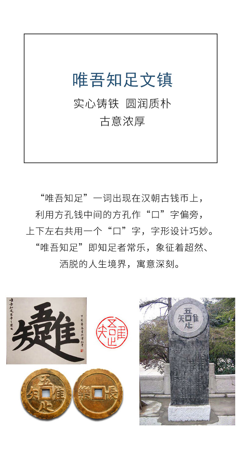 漢墨 唯吾知足镇尺镇纸 铸铁学生初学者书法文镇毛笔笔架 文房四宝礼品把玩镇尺子   收藏