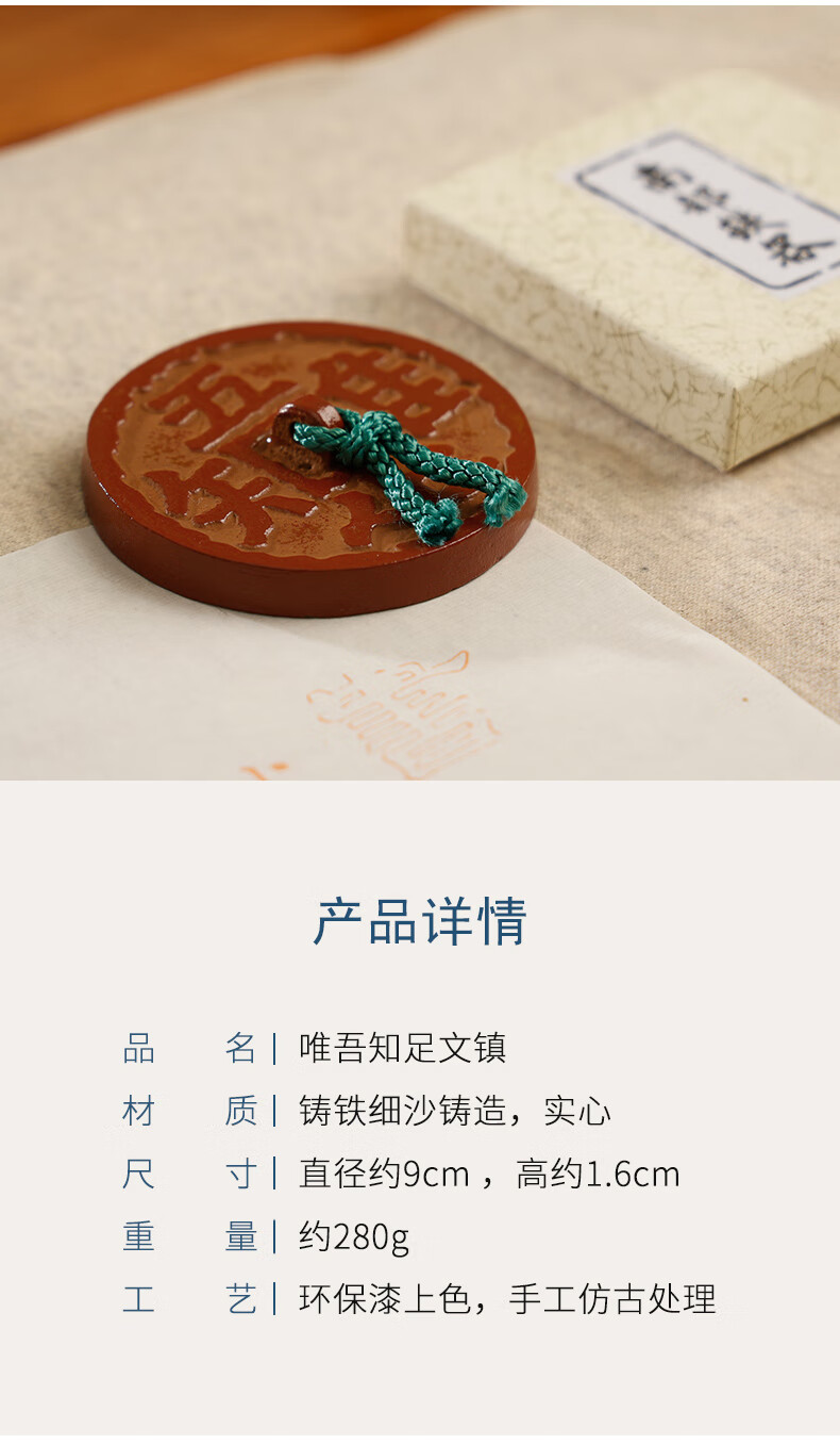 • 漢墨 唯吾知足镇尺镇纸 铸铁学生初学者书法文镇毛笔笔架 文房四宝礼品把玩镇尺子