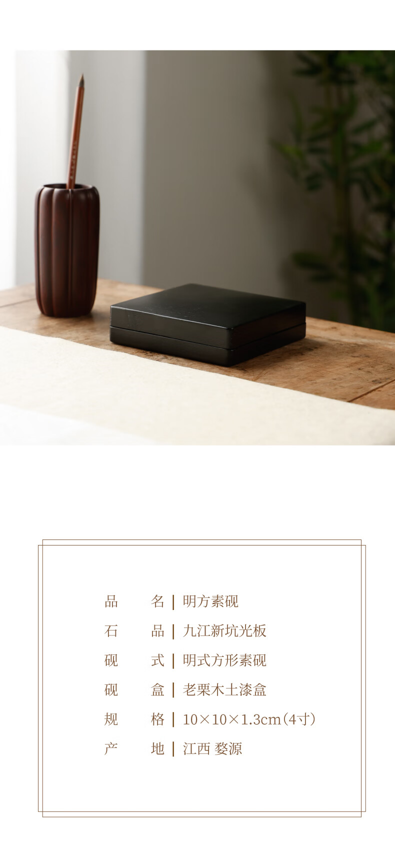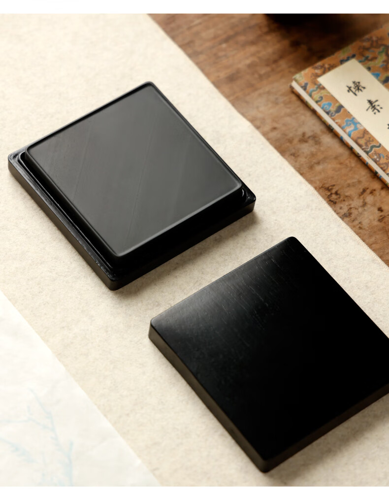 • 漢墨 手工明方素砚4寸砚台 歙砚原石毛笔书法用带盖砚台 文房四宝礼品礼物送礼木盒装