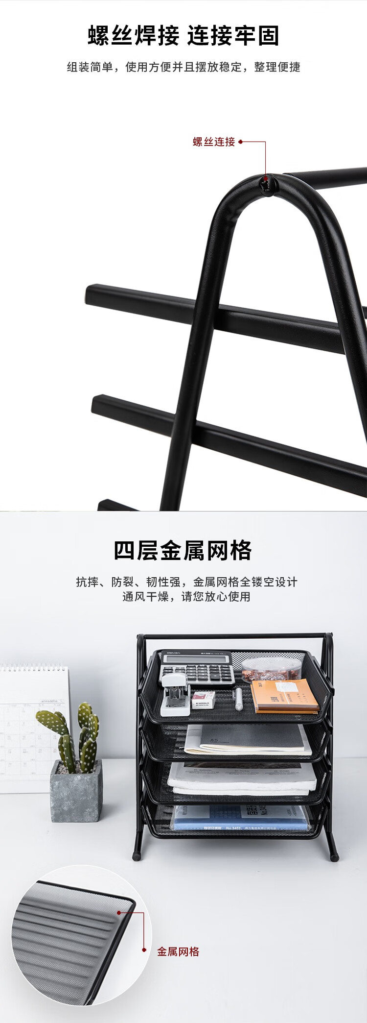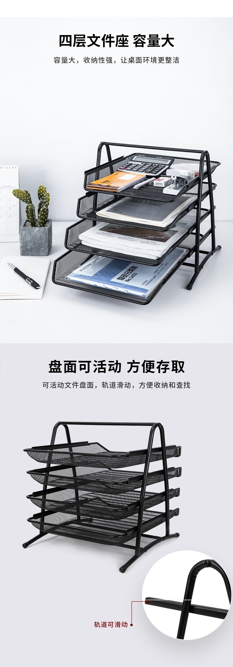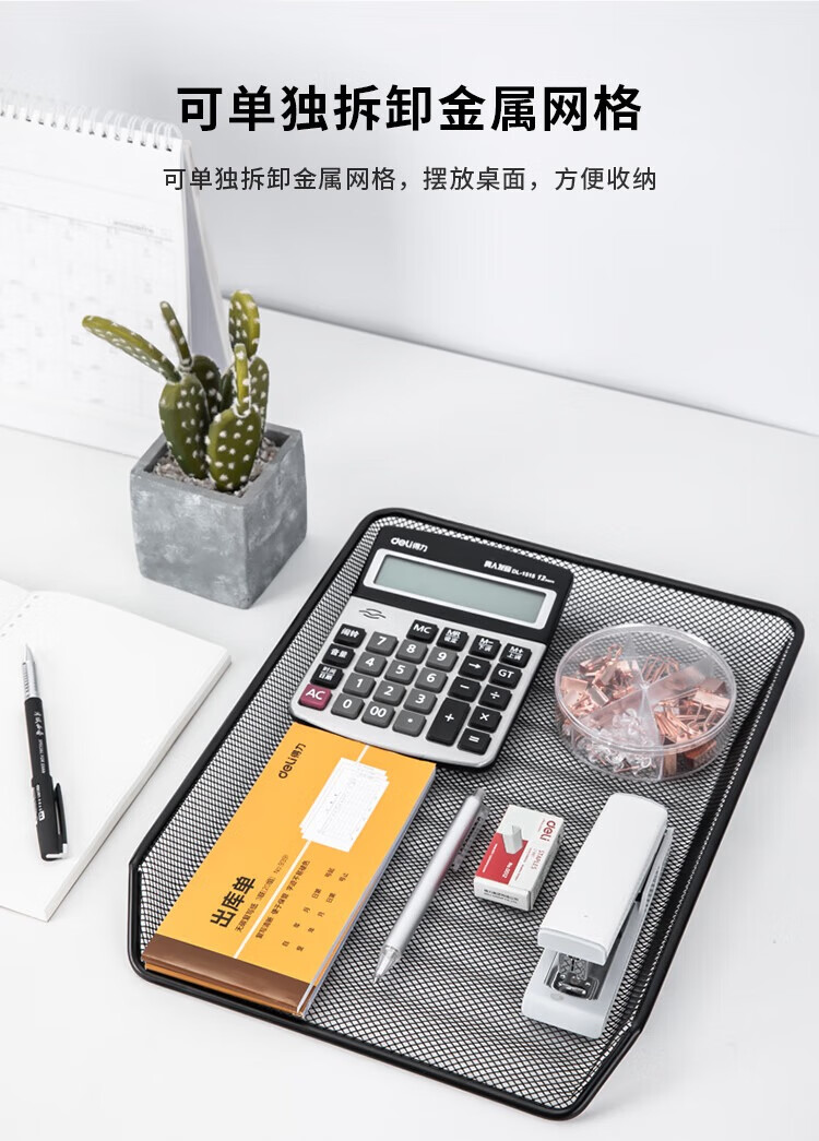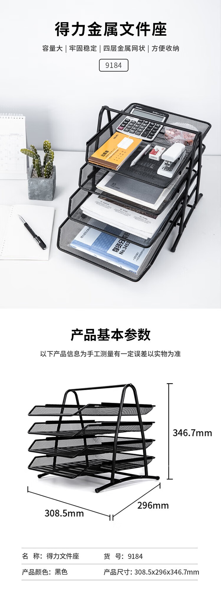 • 得力 金属文件盘文件架文件座资料篮收纳框架置物架文件座(黑色)9184