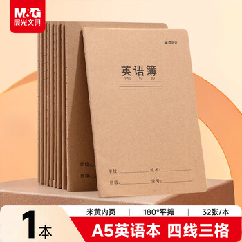 晨光(M&G)A5英语本缝线本牛皮纸封面学生田字方格作业簿数学练习本32页笔记本 V-FA5360C 单本   收藏