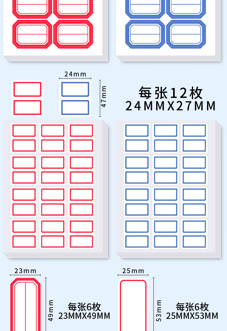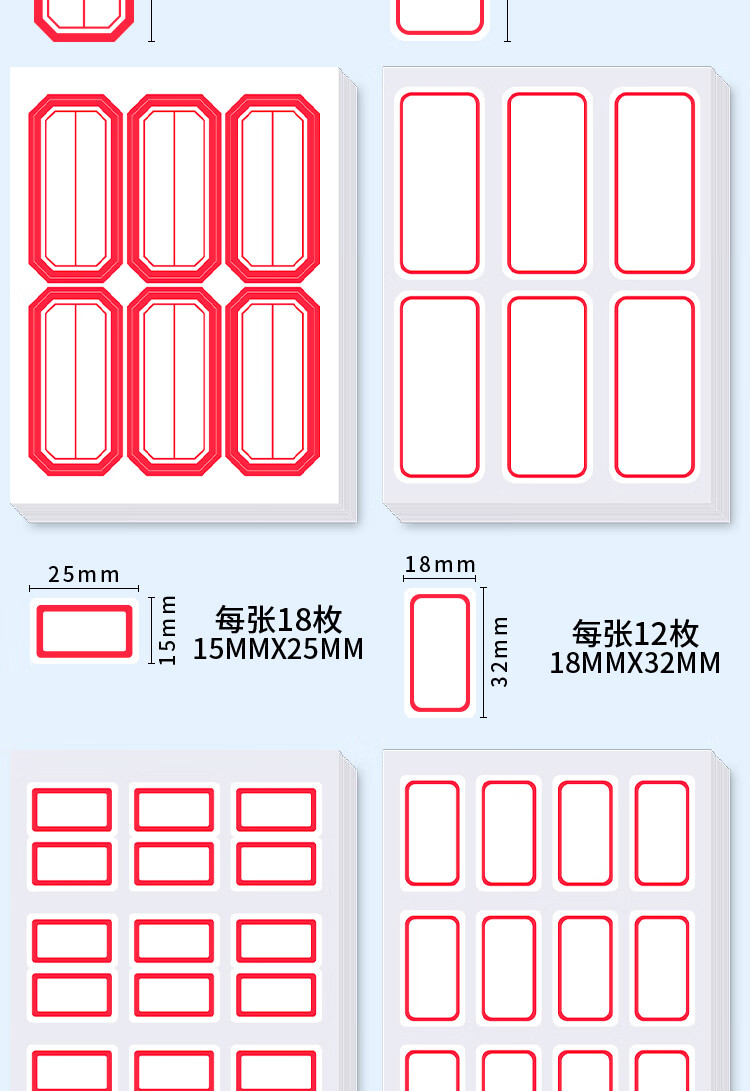 • 苏拉达标签贴144枚24x27mm红框不干胶标签纸贴纸姓名贴口取纸贴纸标签贴纸便利贴易撕标签贴纸BQ-0111