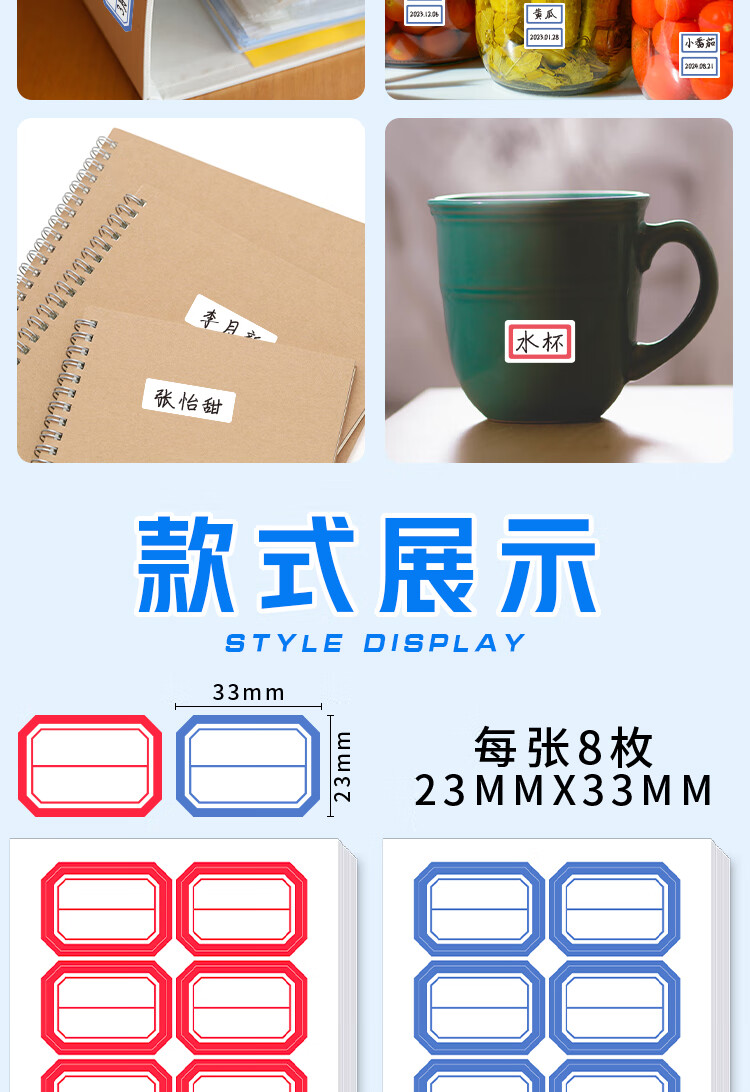 苏拉达标签贴144枚24x27mm红框不干胶标签纸贴纸姓名贴口取纸贴纸标签贴纸便利贴易撕标签贴纸BQ-0111   收藏
