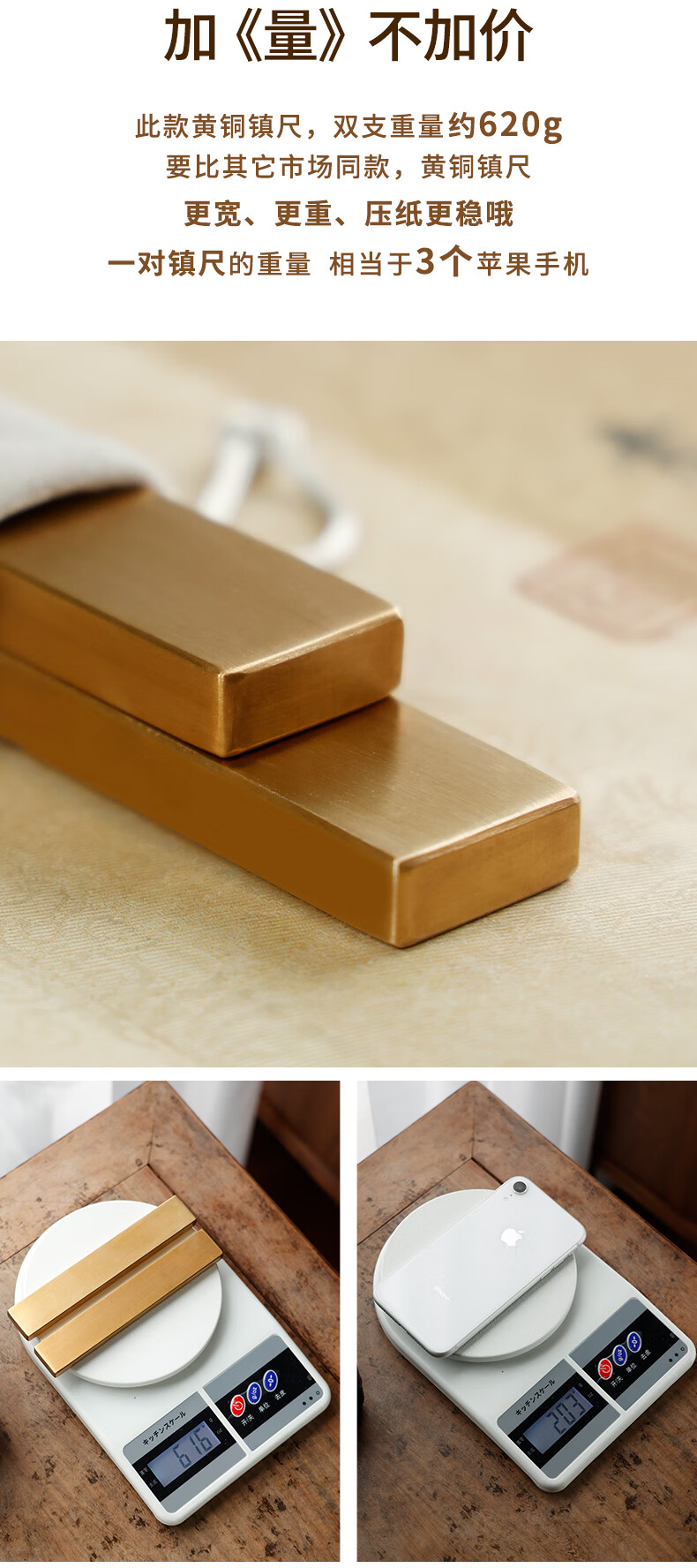 • 漢墨 黄铜对镇镇纸镇尺 铜大号简约黄铜文镇毛笔架2支装 文房四宝礼品把玩铜器摆件