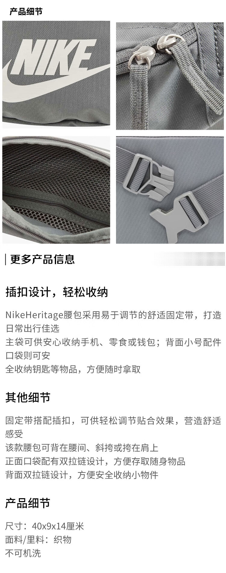 耐克(NIKE)男女腰包 单肩包斜挎包胸包休闲包DB0490-084 灰色   收藏
