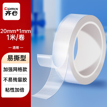 • 齐心(COMIX)纳米双面胶 20mm*1m 强力高粘双面胶无痕墙面贴 网格双面胶透明防水纳米胶 1卷 WG2011