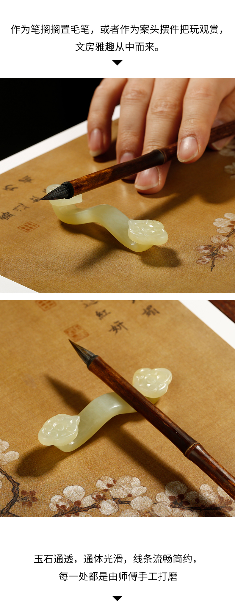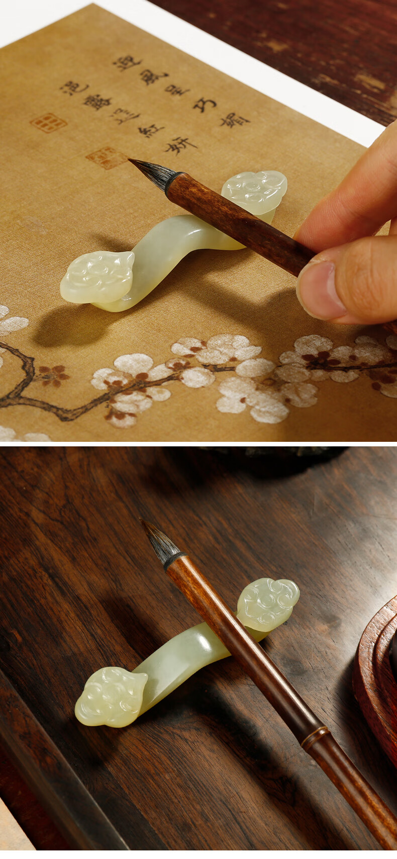 • 漢墨 岫玉如意毛笔笔架 多功能毛笔笔置笔搁毛笔架子 文房四宝把玩瓷器摆件2支装