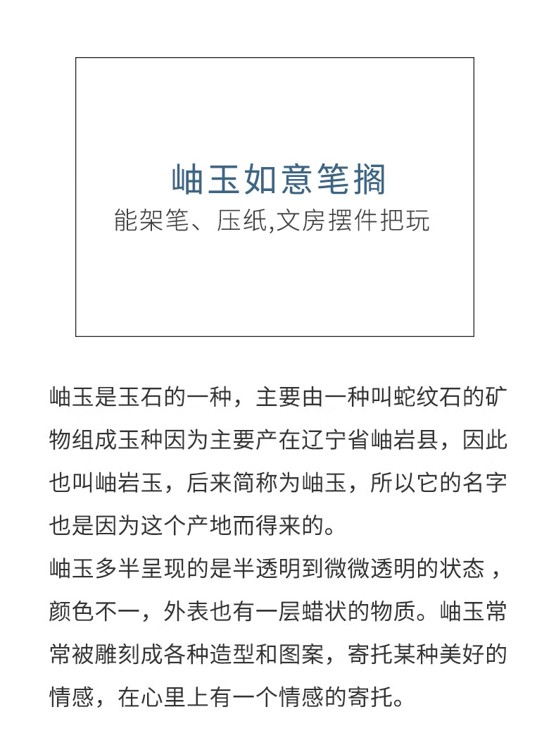 供应商:京东 品牌:漢墨(HANMO) 产地:中国大陆 重量:0.020 销售单位:个 包装清单:玉如意毛笔笔架*2 售后信息:不支持7天无理由退货