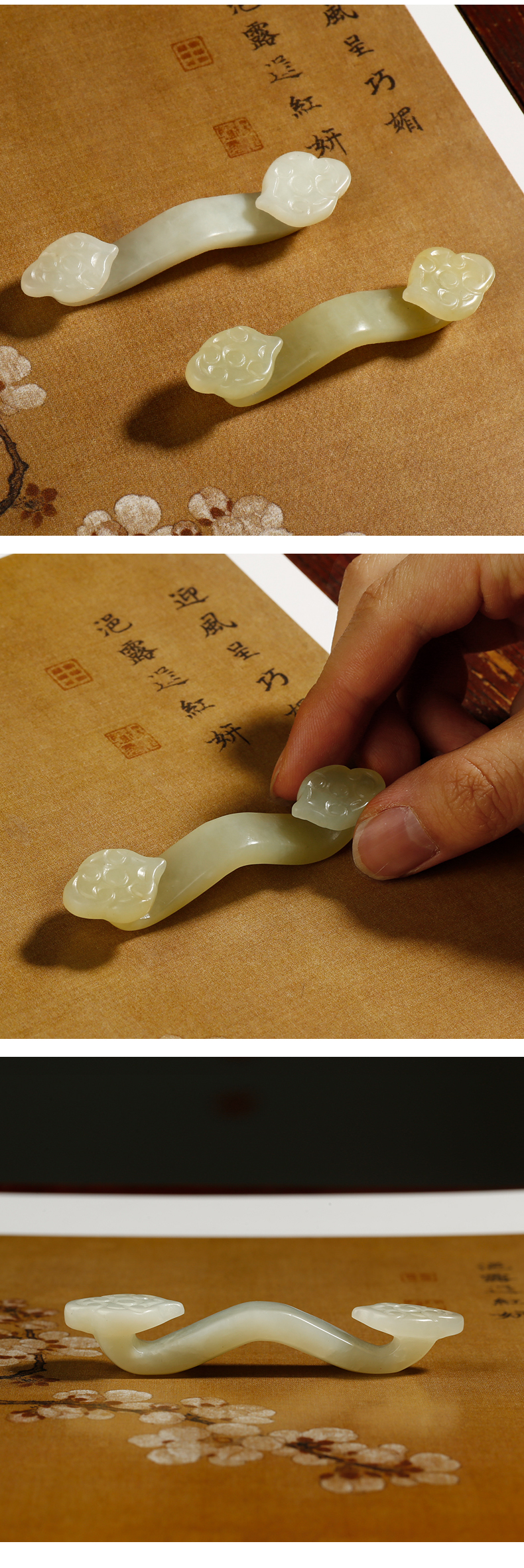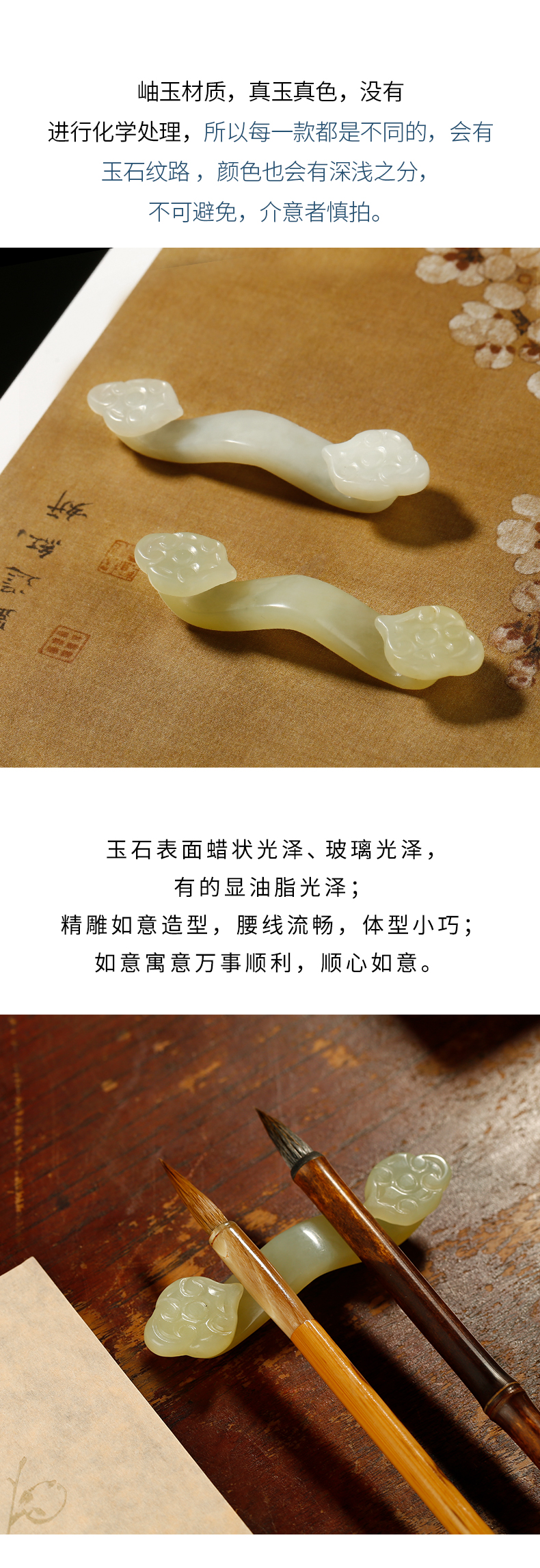 漢墨 岫玉如意毛笔笔架 多功能毛笔笔置笔搁毛笔架子 文房四宝把玩瓷器摆件2支装   收藏