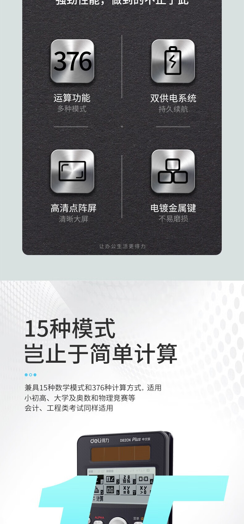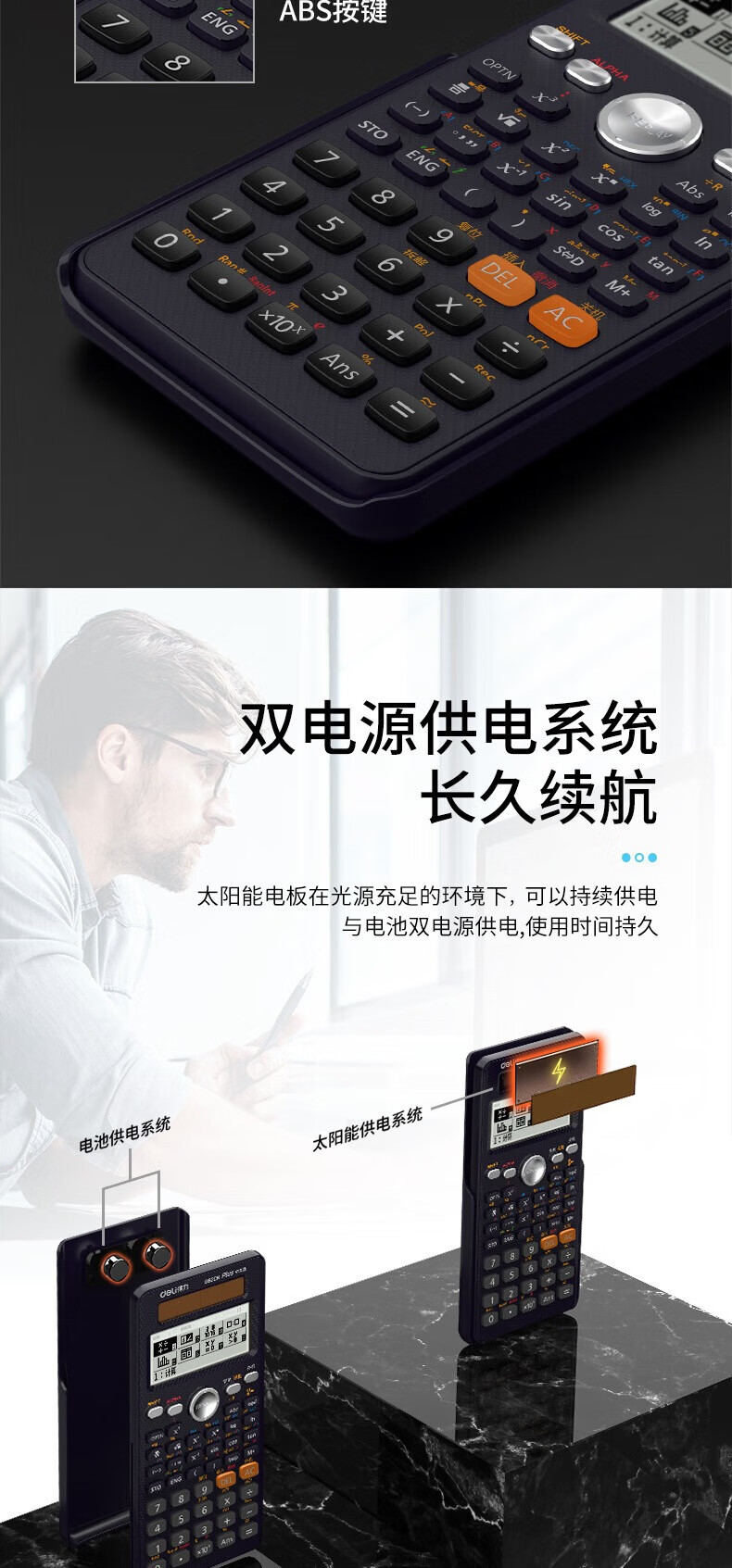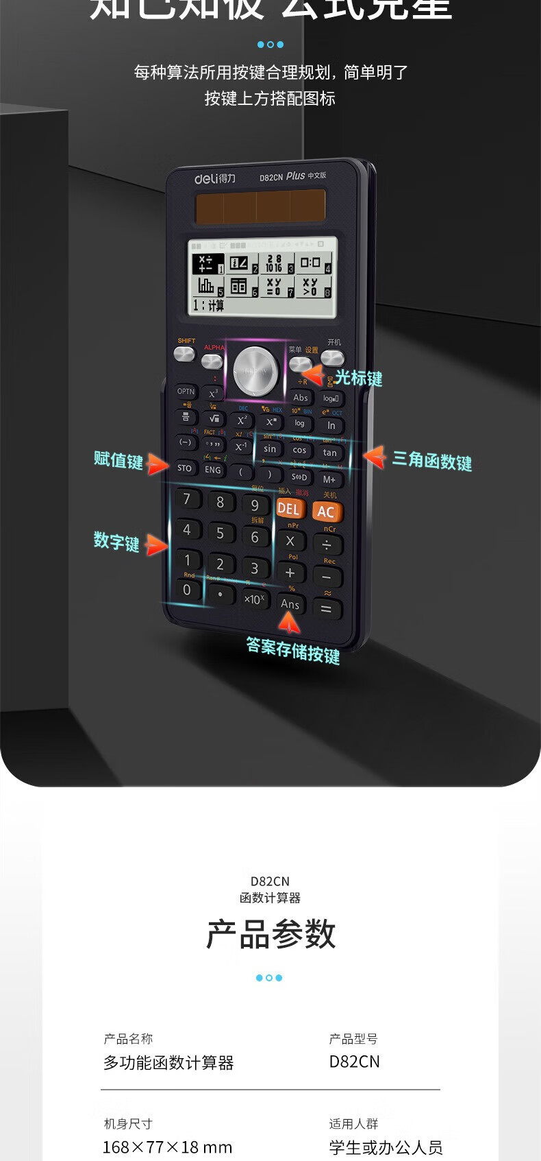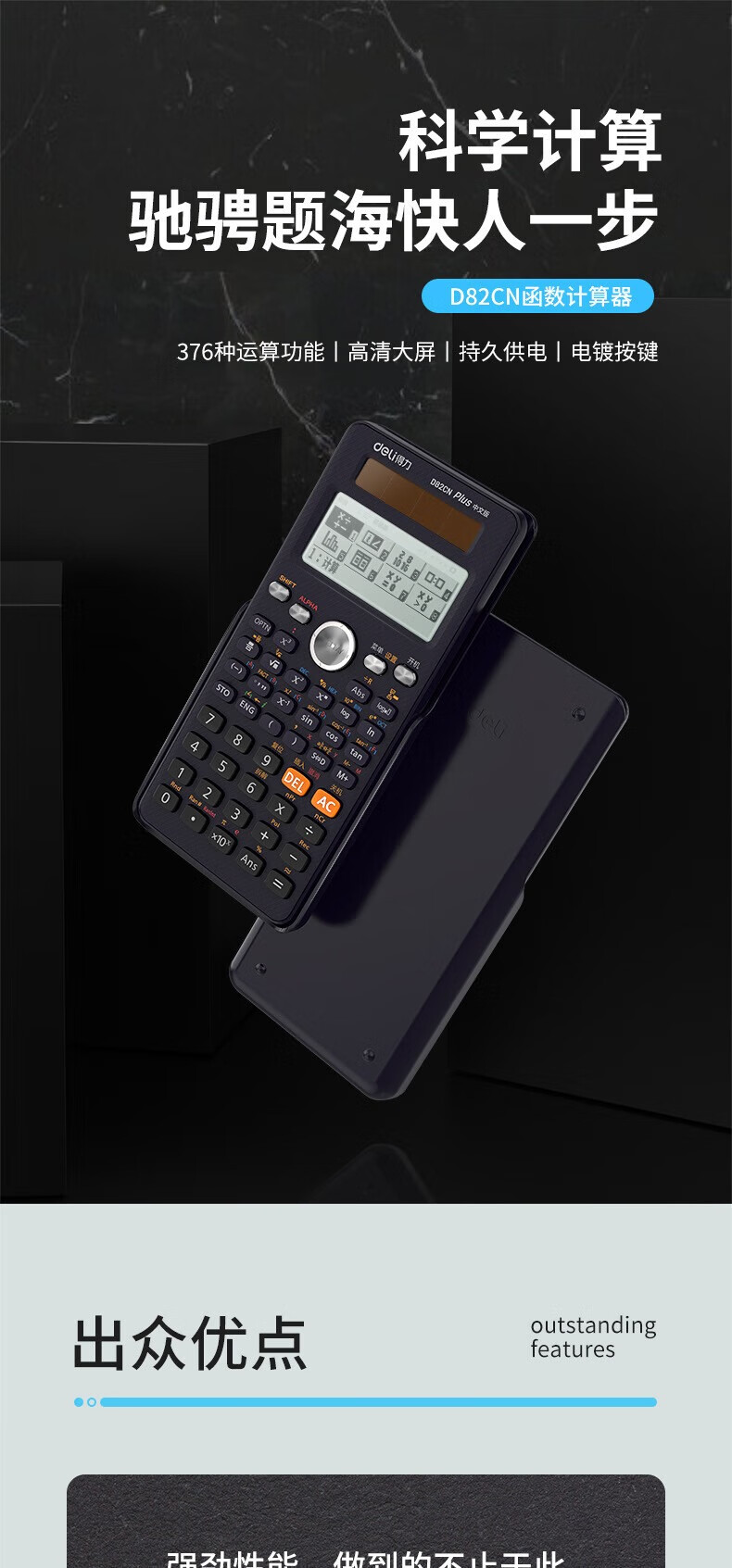 • 得力科学函数计算器252种功能 D82ES函数计算器【黑色】