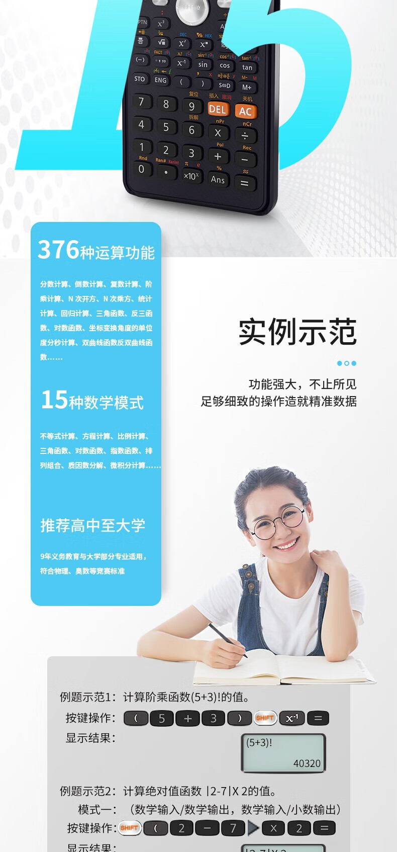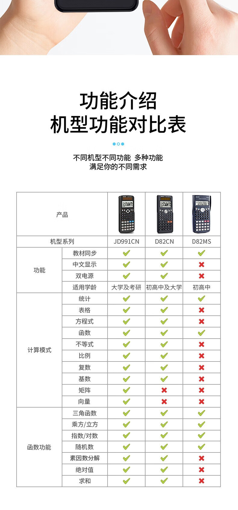 供应商:京东 品牌:得力 产地:中国大陆 重量:0.100 销售单位:个 包装清单:得力Deli/科学函数计算器252种功能 D82ES函数计算器【黑色】/1个 售后信息:不支持7天无理由退货