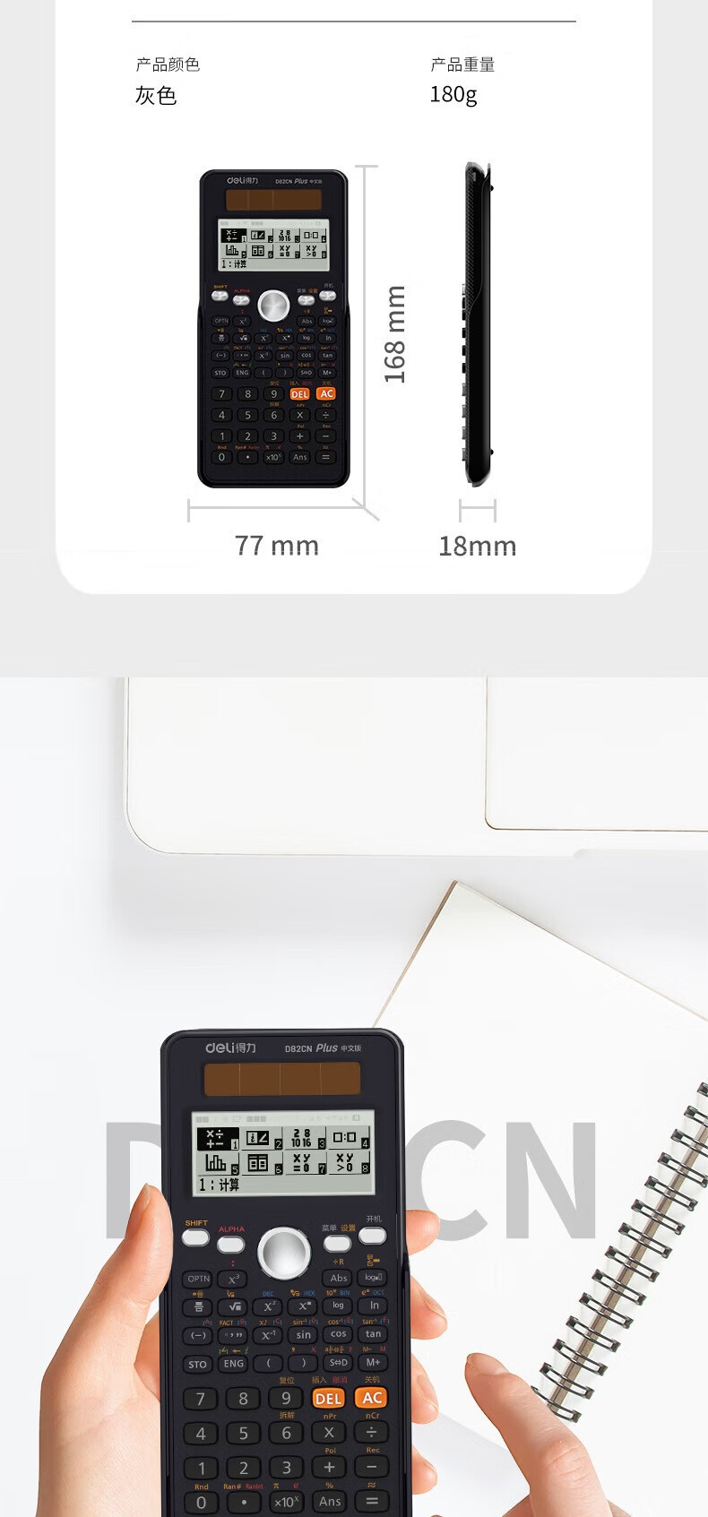 得力科学函数计算器252种功能 D82ES函数计算器【黑色】   收藏