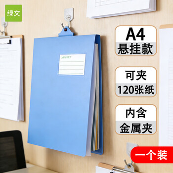 • 绿文A4悬挂式文件夹竖版可悬挂文件夹板单强力夹资料夹子工厂考勤签到日记录夹仓库上翻文件档案收纳夹